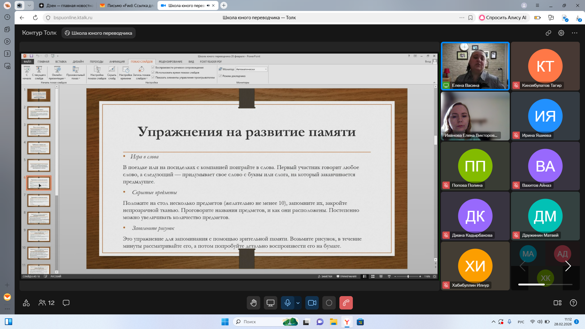 Сегодня, 28 февраля 2026 г., состоялось завершающее занятие на обучающем курсе «Школа юного переводчика», проводимом кафедрой межкультурной коммуникации и перевода Башкирского государственного педагогического университета им. М. Акмуллы для учащихся 10-11 классов общеобразовательных учреждений РФ с целью их профессионального ориентирования.