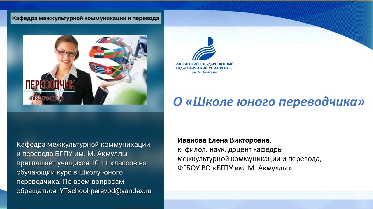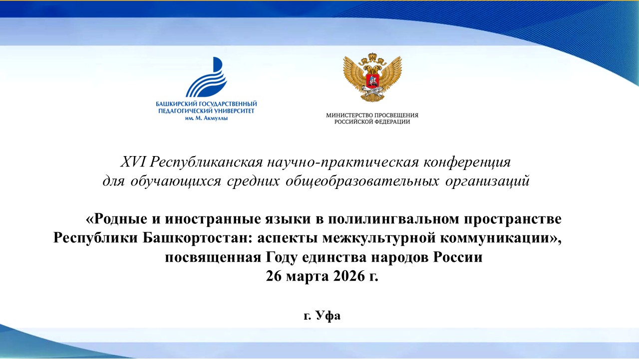 26 марта 2026 года в рамках XVI Республиканской научно-практической конференции «Родные и иностранные языки в полилингвальном пространстве Республики Башкортостан: аспекты межкультурной коммуникации» состоялась презентация проекта «Школа юного переводчика», реализуемого кафедрой межкультурной коммуникации и перевода.