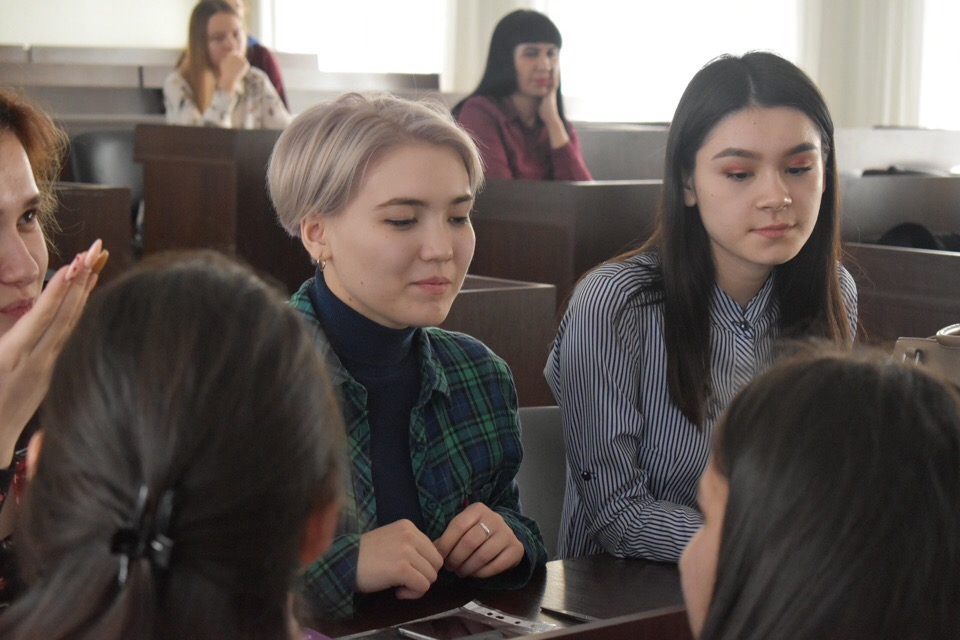 В рамках Дня открытых дверей университета студенты кафедры межкультурной коммуникации и перевода под руководством преподавателя Марфиной Ксении Сергеевны провели мастер-класс по основам переводческой деятельности.