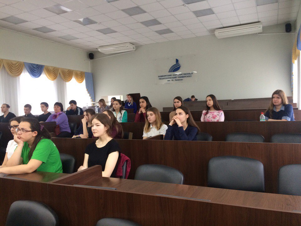 15 апреля в рамках университетской субботы профессор кафедры русской литературы, доктор педагогических наук А.М. Шуралёв и аспирант, учитель русского языка и литературы Кушнаренковской гимназии И.Л. Гизатуллина провели для школьников МБОУ "Башкирская Гимназия  158 имени Мустая Карима" творческую лекцию «Один человек – а сколько огня и света оставил он!», посвящённую исследованию поэзии Мустая Карима в контексте русской классической литературы. В лекции были рассмотрены особенности образа лирического героя в поэзии М. Карима, проведены художественные параллели между стихотворениями народного поэта Башкортостана и изучаемыми по школьной программе произведениями Н.А. Некрасова, В.М. Гаршина, И.С. Тургенева, А.П. Платонова, А.С. Грина, М. Горького, обращено внимание учеников на единство национальной и общечеловеческой культуры в произведениях выдающегося мастера слова. Студент 2 курса Ильдус Насибуллин прочитал стихи М. Карима на башкирском языке, а студентки 4 курса Анна Степа, Елена Васильева и Гузель Ибатуллина прочитали переводы этих стихов на английском языке.