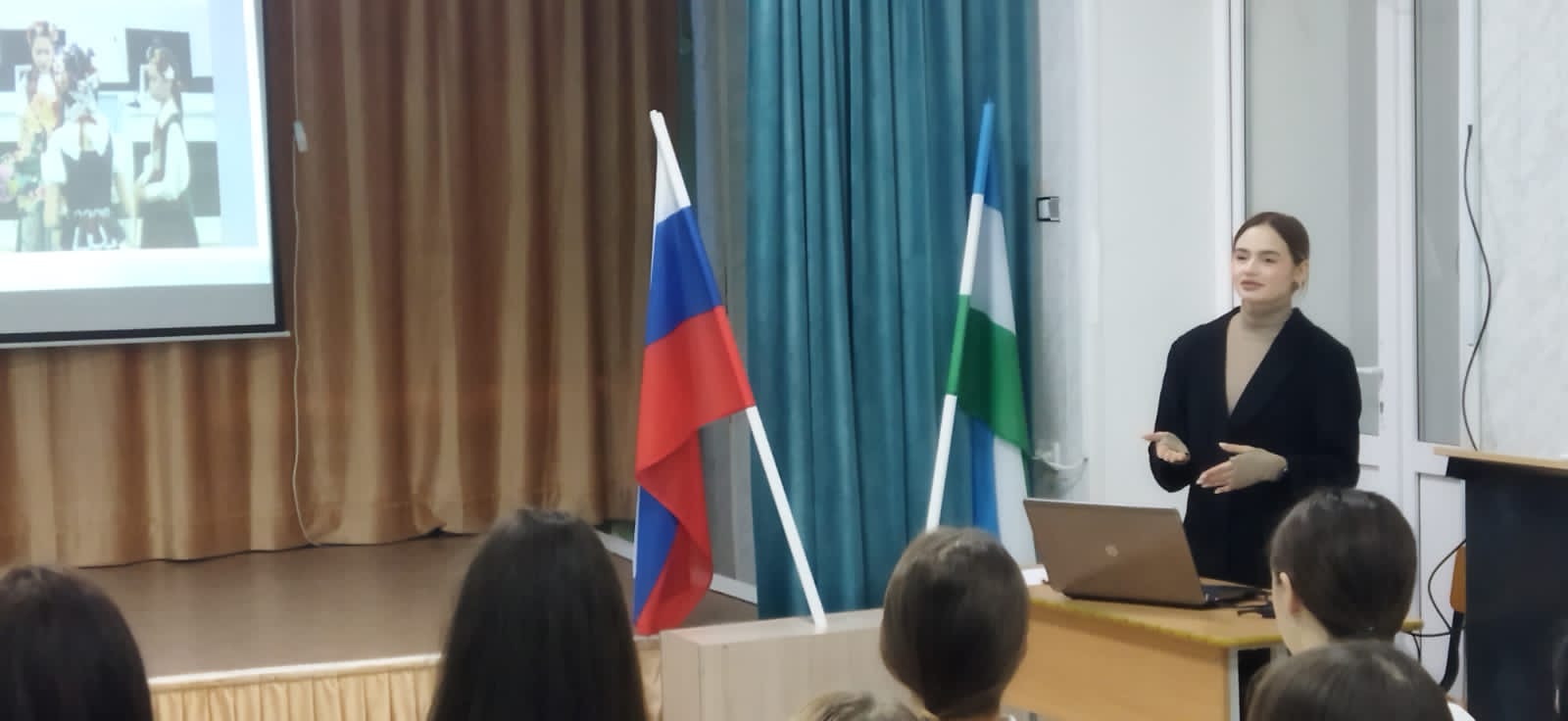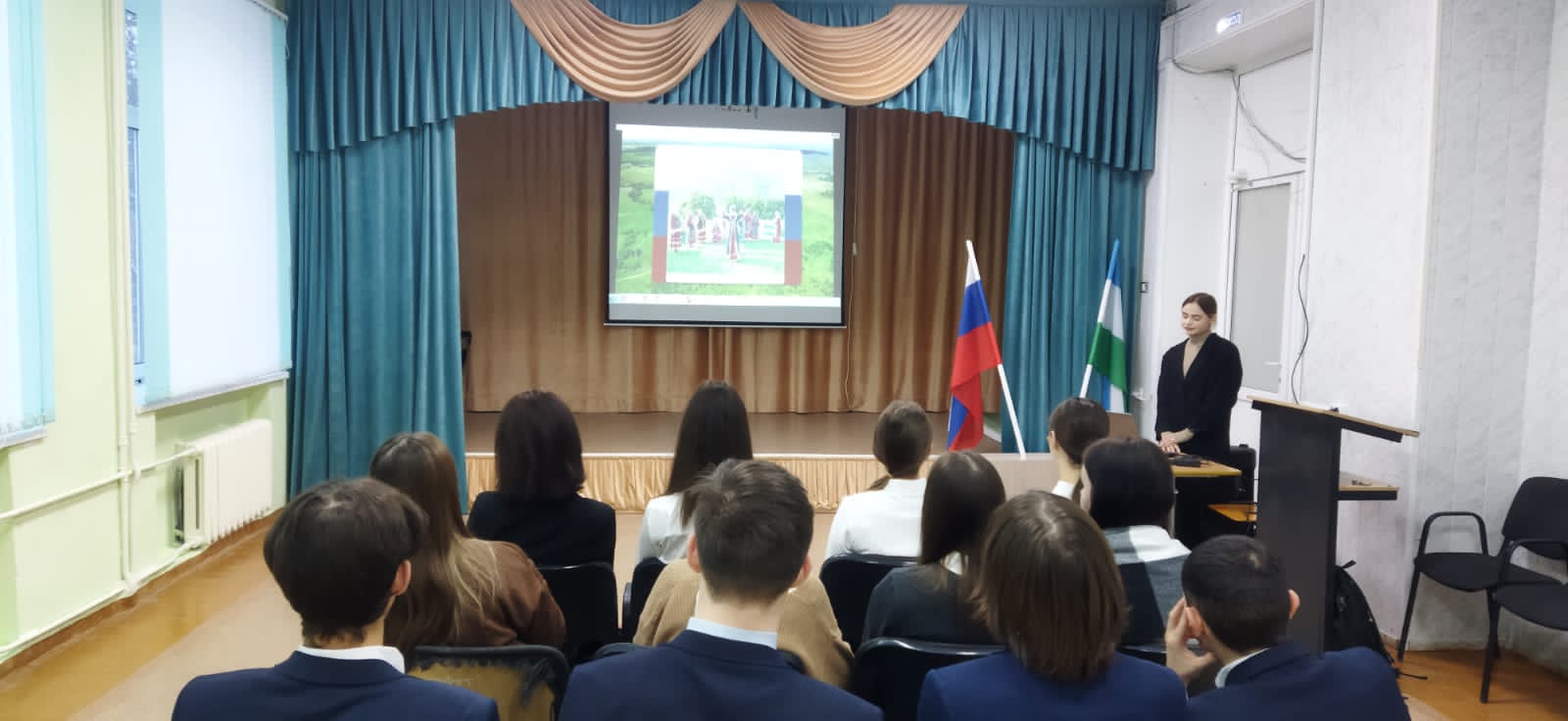 14 и 21 ноября 2022 года студенты 5 курса направления подготовки «Русский язык и литература» провели внеурочные занятия «Разговоры о важном» для обучающихся 11 классов базовых школ Акмуллинского университета: МАОУ «Башкирский лицей № 2» им. Г.Г. Ибрагимова, МАОУ «Центр образования № 10». Студенты Латыпова Виктория, Имангулова Адель, Бочкова Анастасия под руководством заведующего кафедрой русской литературы Ю.А. Шаниной разработали презентационный и дидактический материал по темам «Многообразие языков и культур народов России» и «Материнский подвиг», обратившись к региональным особенностям многоязычия Республики Башкортостан и литературному материалу, который обладает большим воспитательным потенциалом.