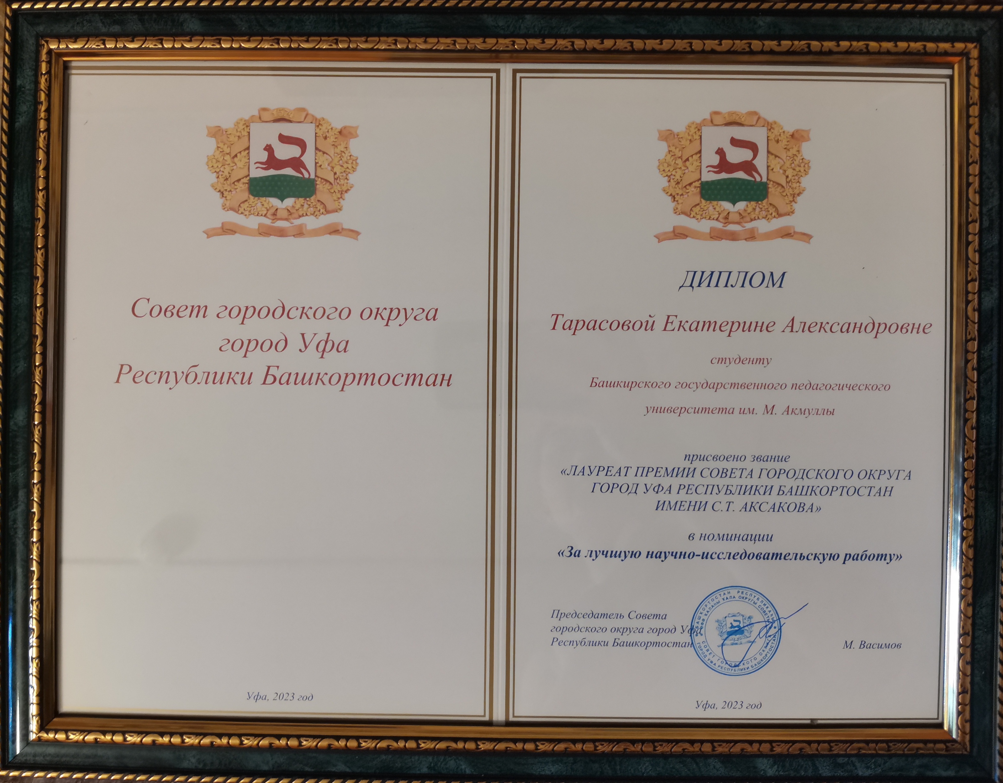 Также в этой номинации премии получили студенты Тимур Янборисов  («Григорий Сергеевич Аксаков – первый гражданский губернатор Уфы») и Эльмира Мусина  («Технология разработки иллюстративной брошюры-путеводителя по аксаковским местам Башкирии»).