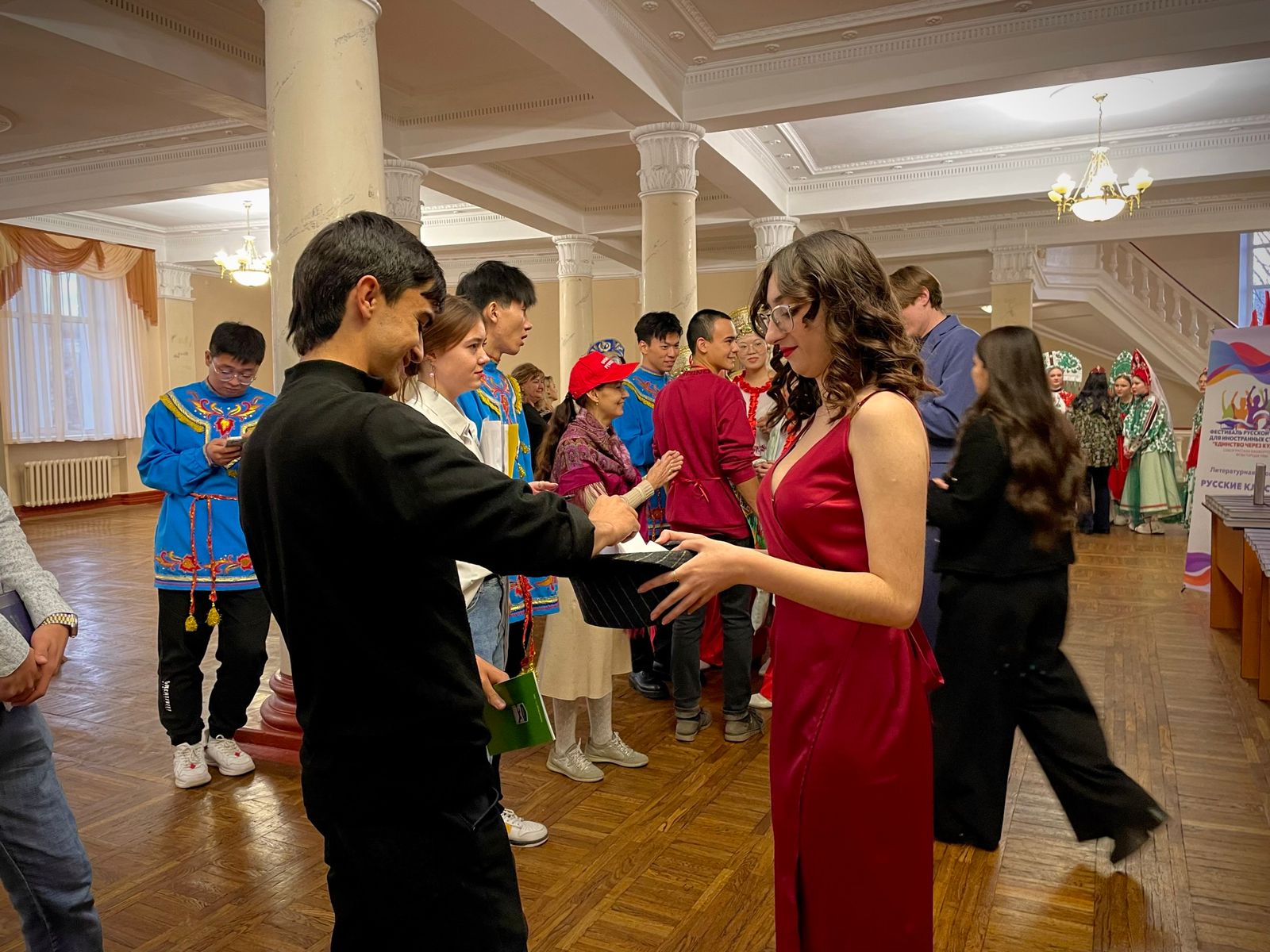 В рамках фестиваля студенты 2 курса направления подготовки «Русский язык и литература» Института филологического образования и межкультурных коммуникаций под руководством ассистента кафедры русской литературы Екатерины Салимбаевой приняли участие в подготовке и проведении площадки «В мире русской литературы». Участниками фестиваля стали иностранные студенты, обучающиеся в уфимских вузах. Нашими студентами их вниманию была представлена танцевальная композиция. Особый интерес гости мероприятия проявили к предложению выразительно прочитать с листа отрывки из произведений великих русских поэтов.  В качестве поощрения чтецы получили в подарок книги русских классиков: А.П. Чехова, Ф.М. Достоевского, А.С. Пушкина и др.