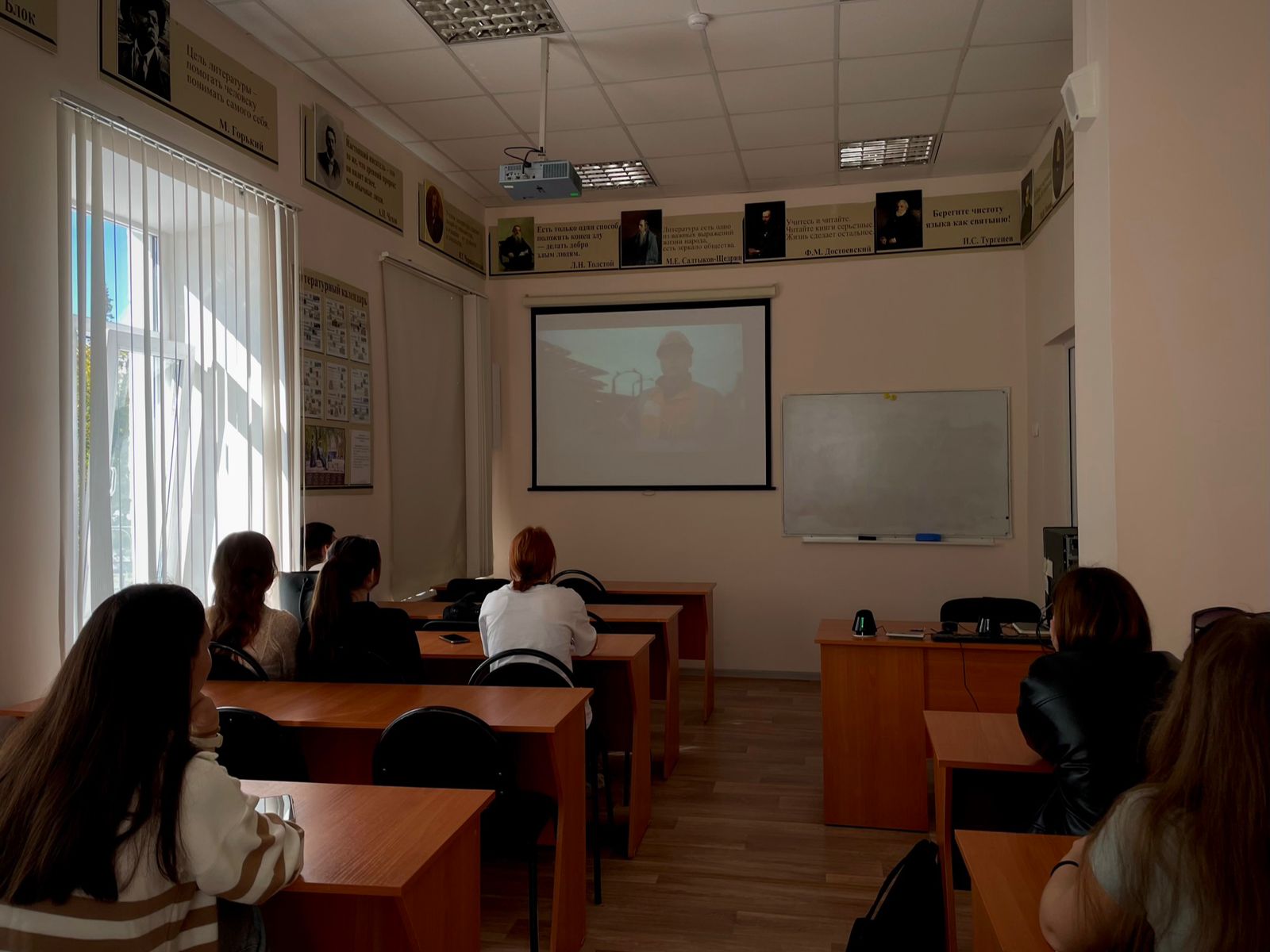 16 сентября 2024 года для студентов 1 курса направления подготовки «Педагогическое образование» профиля «Русский язык и литература» был проведён кураторский час на тему «Дорогами России». Целями мероприятия были повышение уровня знаний обучающихся о Российских железных дорогах, формирование чувства гордости за достижения России в железнодорожной отрасли, понимания роли железнодорожного транспорта и работников этой сферы в экономическом и социальном развитии России. В ходе мероприятия, проведенного ассистентом кафедры русской литературы Екатериной Салимбаевой, студенты ознакомились с презентацией и видеороликом, приняли участие в дискуссии о служении Отечеству и ответственности за его судьбу, ценности созидательного труда, коллективизма, взаимопомощи и взаимоуважении, исторической памяти и преемственности поколений.