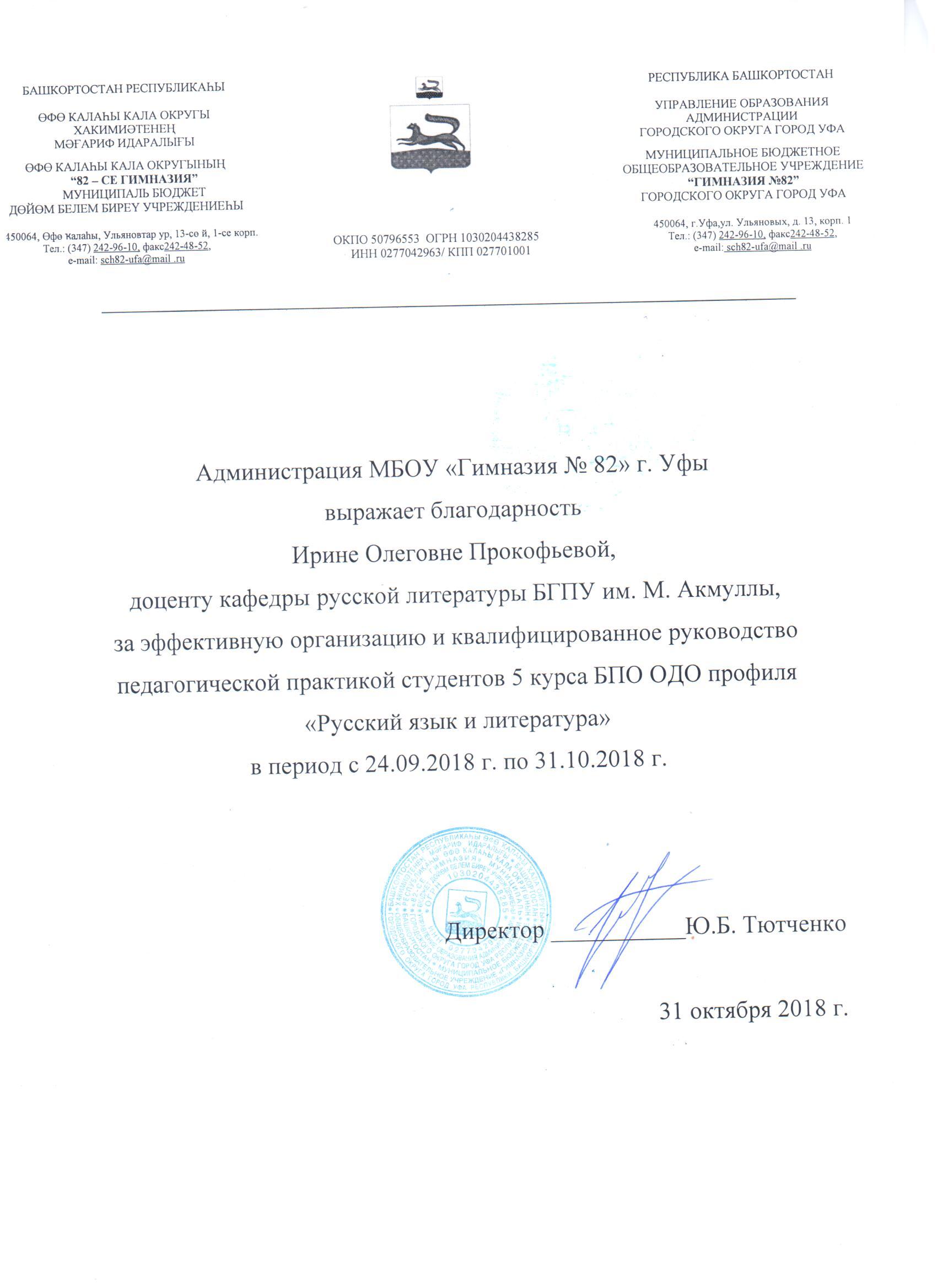 На 5 курсе ПОРЯЛ завершилась последняя педагогическая практика, которая проходила с 29 сентября по 30 ноября 2018 г. в школах г. Уфы (МБОУ «Гимназии № 82», МБОУ «Школа № 41», МБОУ «Лицей № 5», МАОУ «Гимназия № 93»), в районах РБ и РТ. Руководили практикой филологов преподаватели кафедры русской литературы (А.А. Файзрахманова, А.М. Шуралёв); кафедры русского языка (И.В. Артюшков, Л.Н. Голайденко, Р.Х. Хайруллина). Курсовые руководители – И.О. Прокофьева, О.В. Тугузбаева.