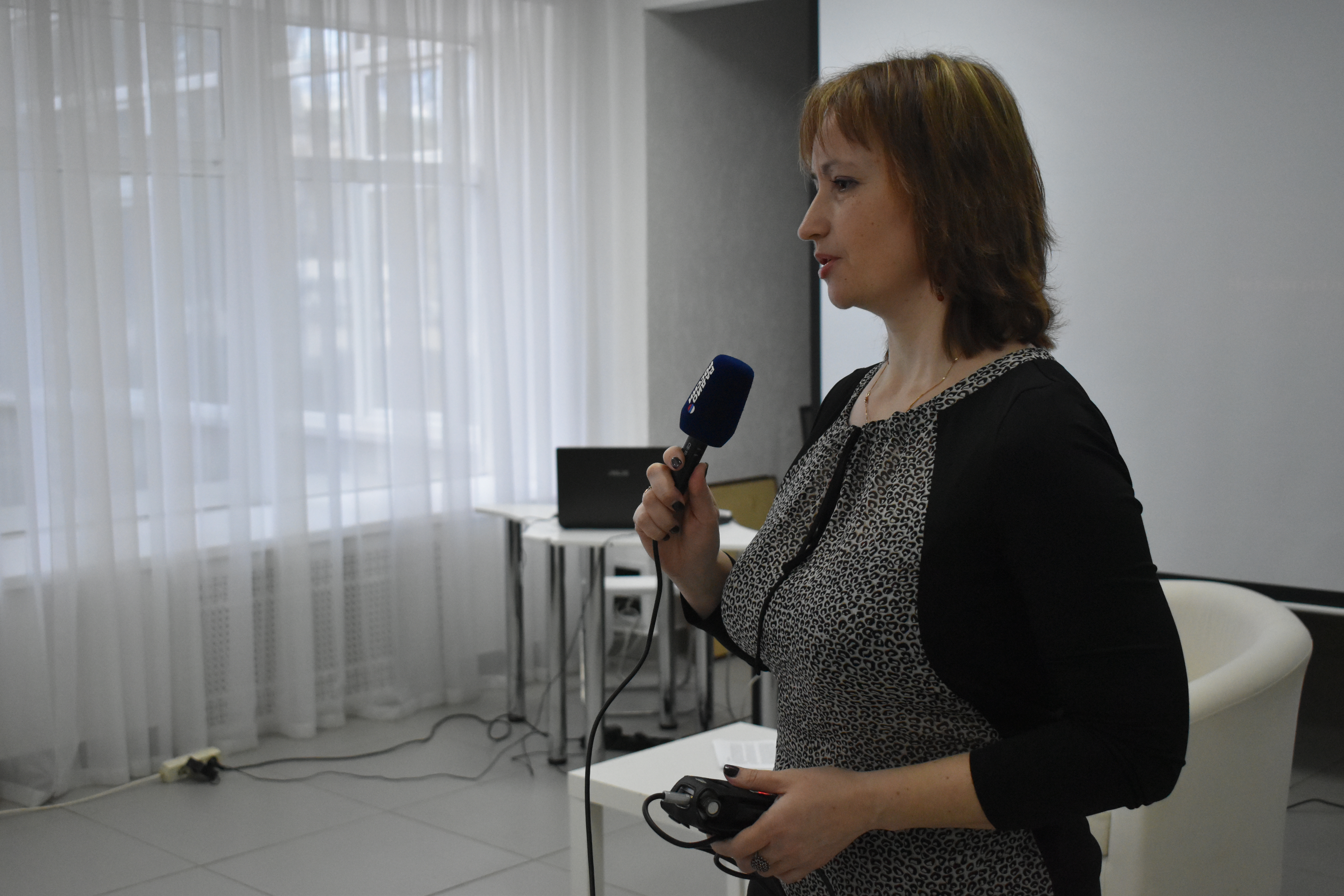 В рамках просветительского проекта «Культурный четверг» 11 апреля в Белом зале прошла встреча студентов 1 и 3 курсов ИФОМК с поэтом, журналистом, шеф-редактором «Радио Россия-Башкортостан» Натальей Николаевной Санниковой. С интересным собеседником время пролетело незаметно. Встреча началась с практических советов и упражнений: как «разогреться» перед эфиром, снять напряжение и разработать артикуляционный аппарат. Такой комплекс упражнений, заметила Наталья Николаевна, нужно выполнять ежедневно в течение 25 минут. Он полезен и учителю.