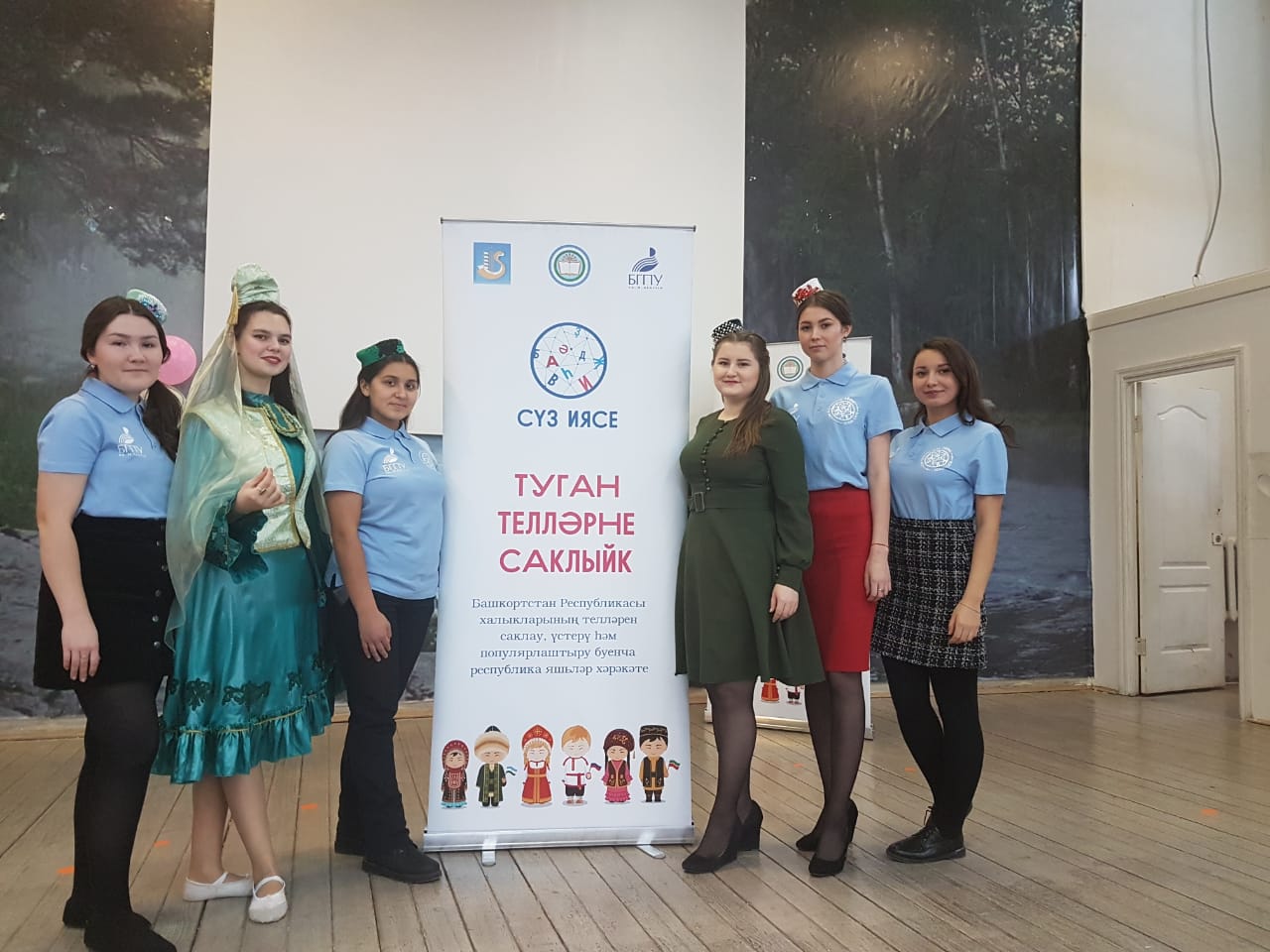 30 ноября 2019 года в рамках реализации гранта Главы РБ, направленного на сохранение и развитие государственных языков РБ и языков народов РБ (проект «Организация республиканского молодежного движения за сохранение, развитие, популяризацию языков народов РБ») волонтеры татарского языка, вместе с волонтерами русского и башкирского языков, посетили МАОУ «Башкирская гимназия-интернат» г. Белебей РБ.