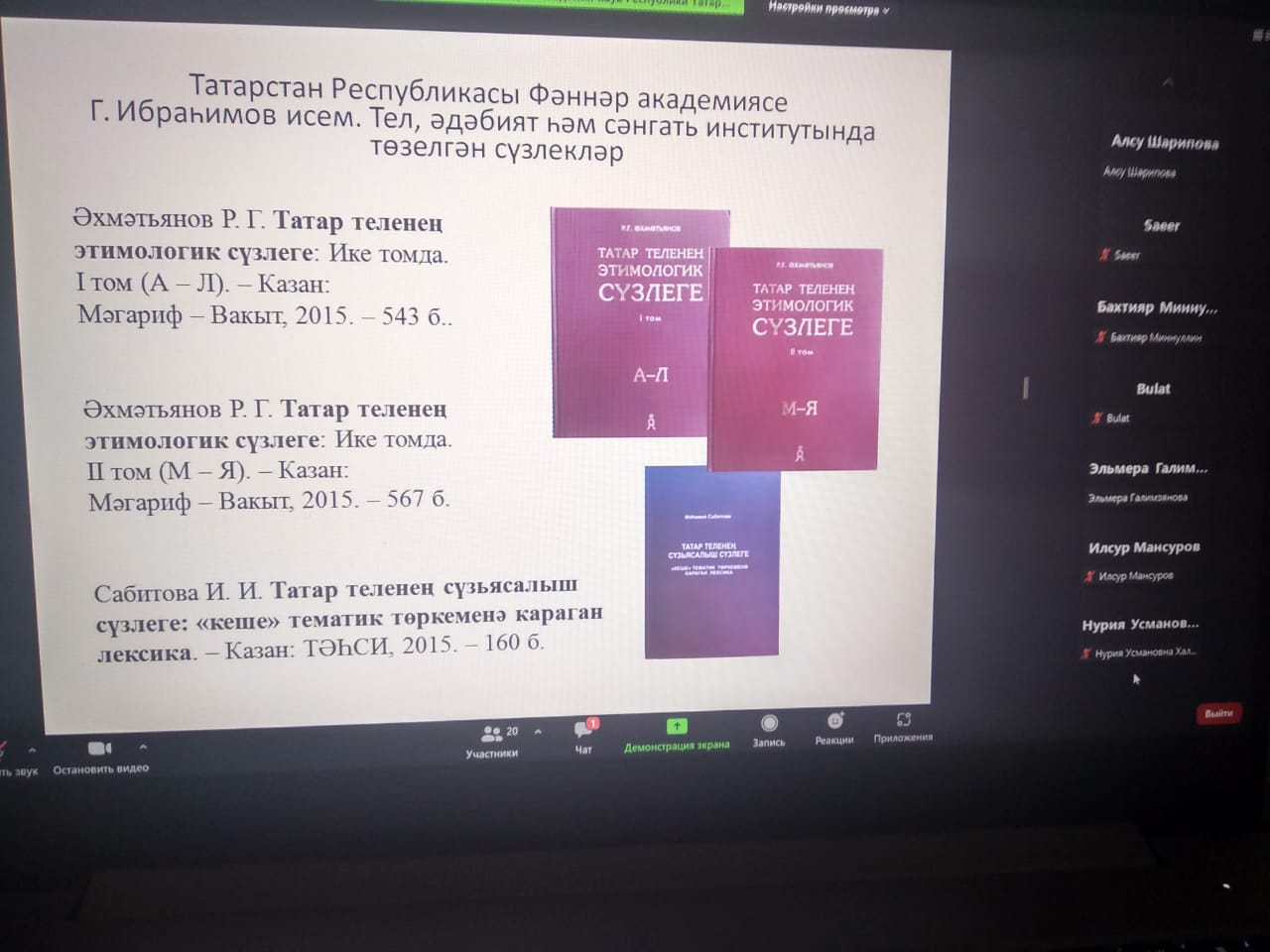 В рамках Международного дня родных языков 21 февраля 2022 года члены кафедры татарского языка и литературы ИФОМК БГПУ им. М. Акмуллы приняли участие в работе Круглого стола «Актуальные проблемы татарской лексикографии», организованный в онлайн формате на платформе «ZOOM» Институтом языка, литературы и искусства им. Г. Ибрагимова Академии наук Республики Татарстан.
