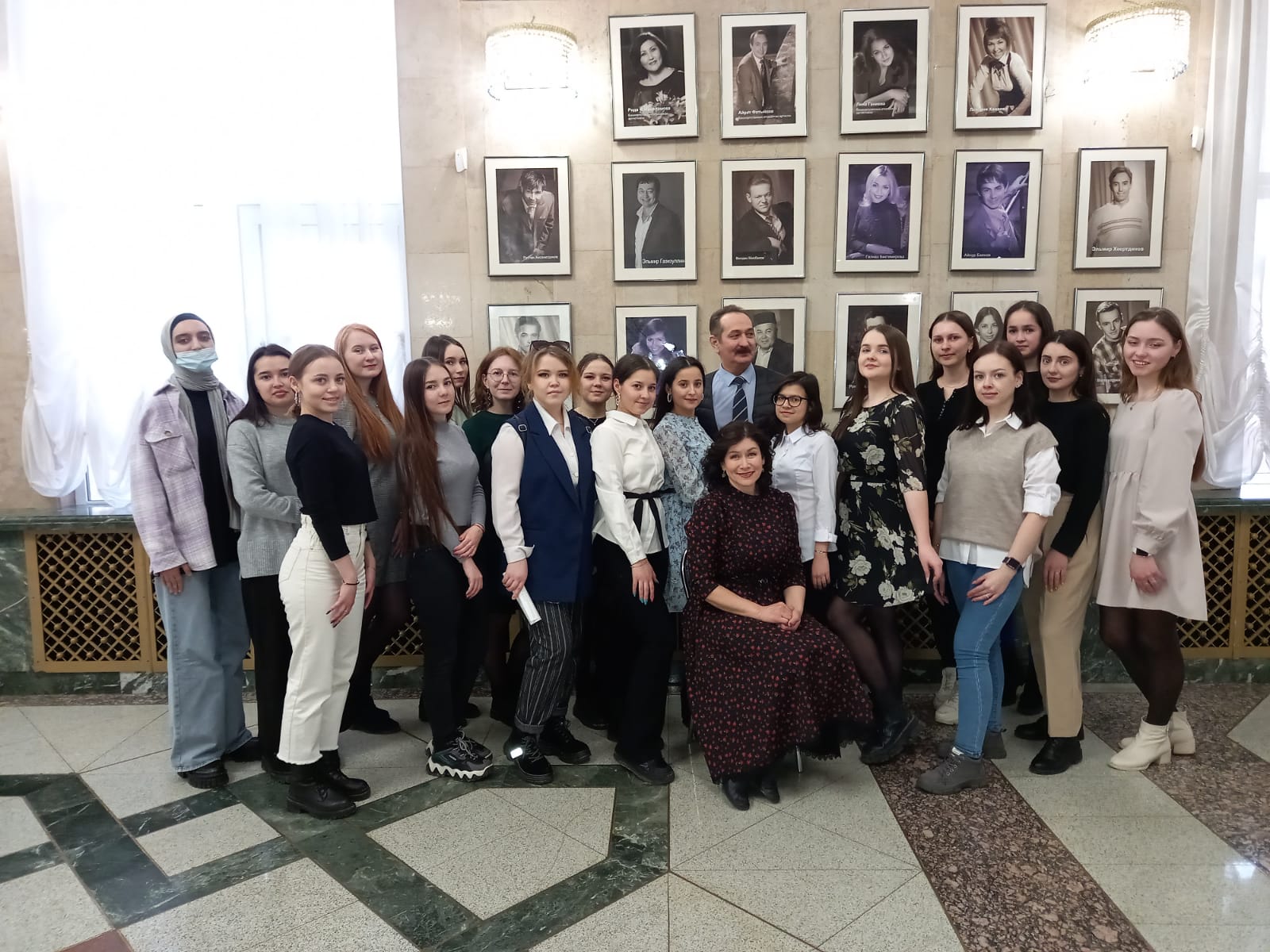 В этот день студентами очень повезло. Они встретились с самим директором театра «Нур» заслуженным работником культуры РБ Фирзатом Габидуллиным. Студенты от него узнали, с чем живет театр сегодня, какие планы на будущее, что нового ожидает зрителей. А встреча с заслуженным артистом РБ и РТ Дамирой Саитовой стала для студентов настоящем сюрпризом. Из ее уст они узнали секреты профессии артиста театра. Студентов интересовало буквально все, и постепенно разговор приобрел форму беседы давно знакомых людей в родной гостиной. Напоследок примадонна театра «Нур» раздала видеокассеты и фотокартины с автографом.