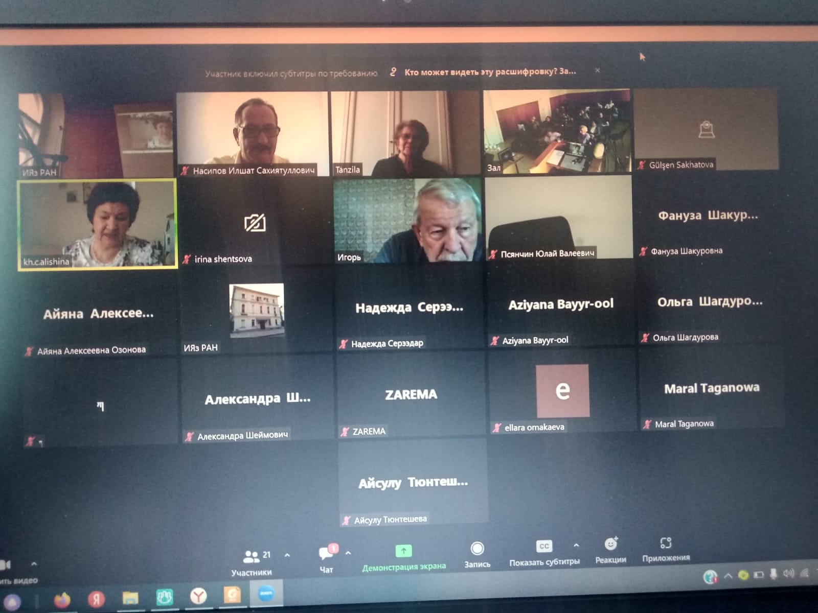 25-26 апреля 2023 года в г. Москва в Институте языкознания РАН состоялось очередное годичное собрание Российского комитета тюркологов при отделении историко-филологических наук Российской Академии наук. С приветственными словами и отчетами выступили председатель РКТ, главный редактор научного журнала «Российская тюроклогия» д.ф.н., профессор И.В. Кормушин и зав.отделом урало-алтайских языков Института языкознания РАН, д.ф.н., профессор, чл.-корр. РАН А.В. Дыбо.