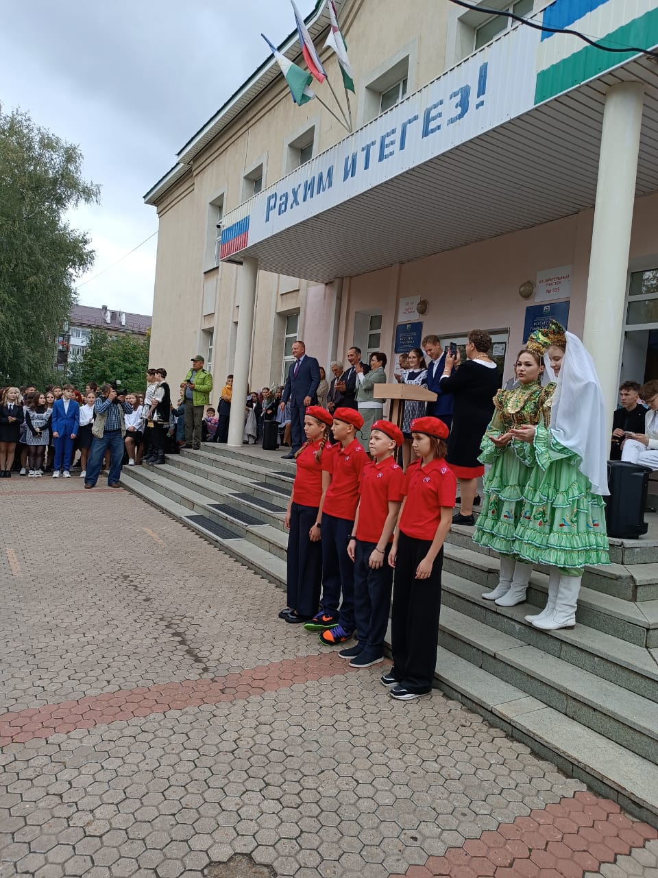 В этот день учеников и учителей с Днем знаний также поздравили и другие гости: И.К. Сухарев – депутат Государственной Думы Федерального Собрания Российской Федерации, первый заместитель председателя ГД по вопросам собственности, земельным и имущественным отношениям; А.А. Галиев – юрист Управления образования администрации ГО г. Уфа; д.филол.н., профессор, писатель Р.К. Амиров.