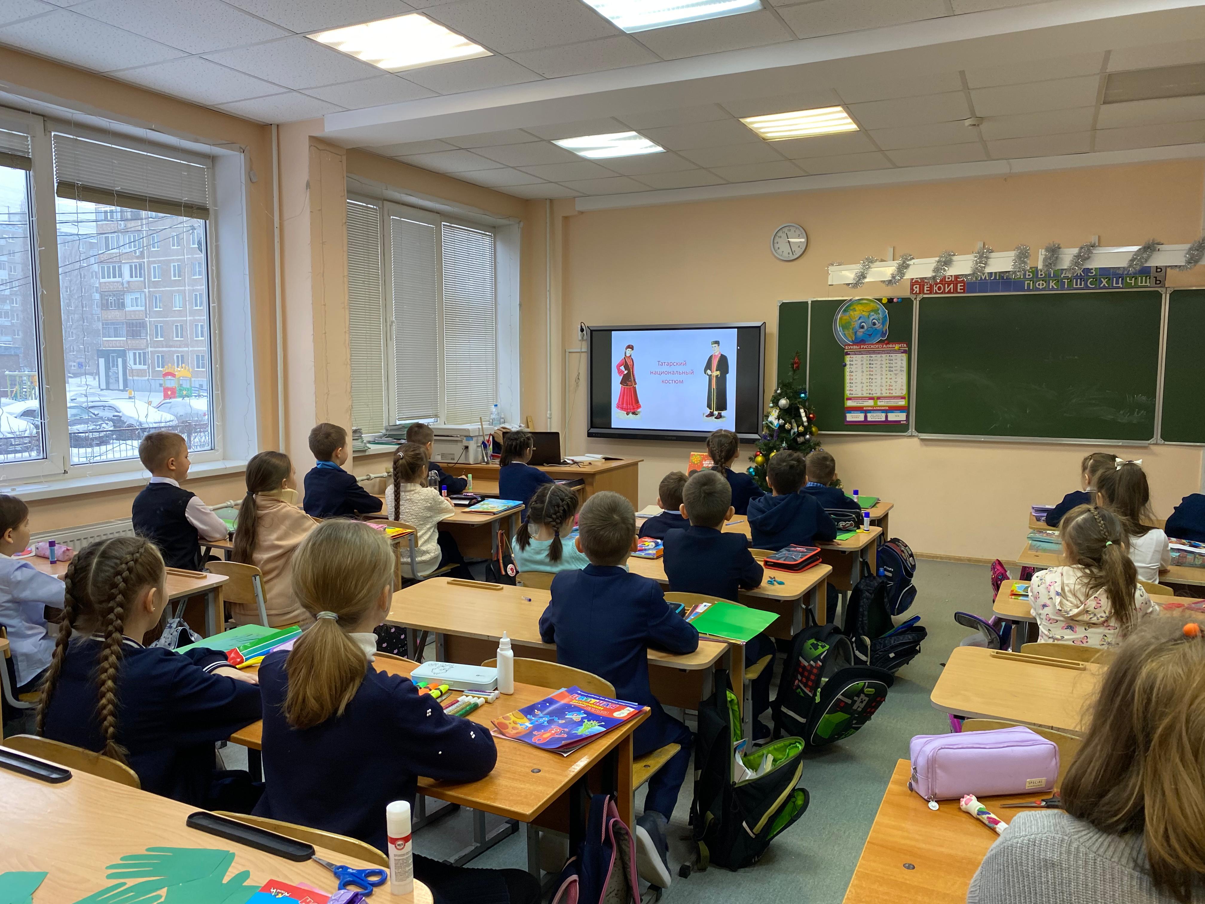 20 декабря 2023 г. в МАОУ "Татарская гимназия №84" ГО г. Уфа советник директора гимназии по воспитанию и взаимодействию с детскими общественными объединениями, студентка группы ПОТЯ-АНЯ-51-19 ИФОМК Шаригина Регина Рауфовна в рамках работы с психолого-педагогическими классами гимназии ознакомила учащихся с историей татарского национального костюма. Во время демонстрации костюмов у ребят была возможность примерить костюм на себе. А учащиеся начальных классов в живую демонстрировали образцы национальных костюмов.