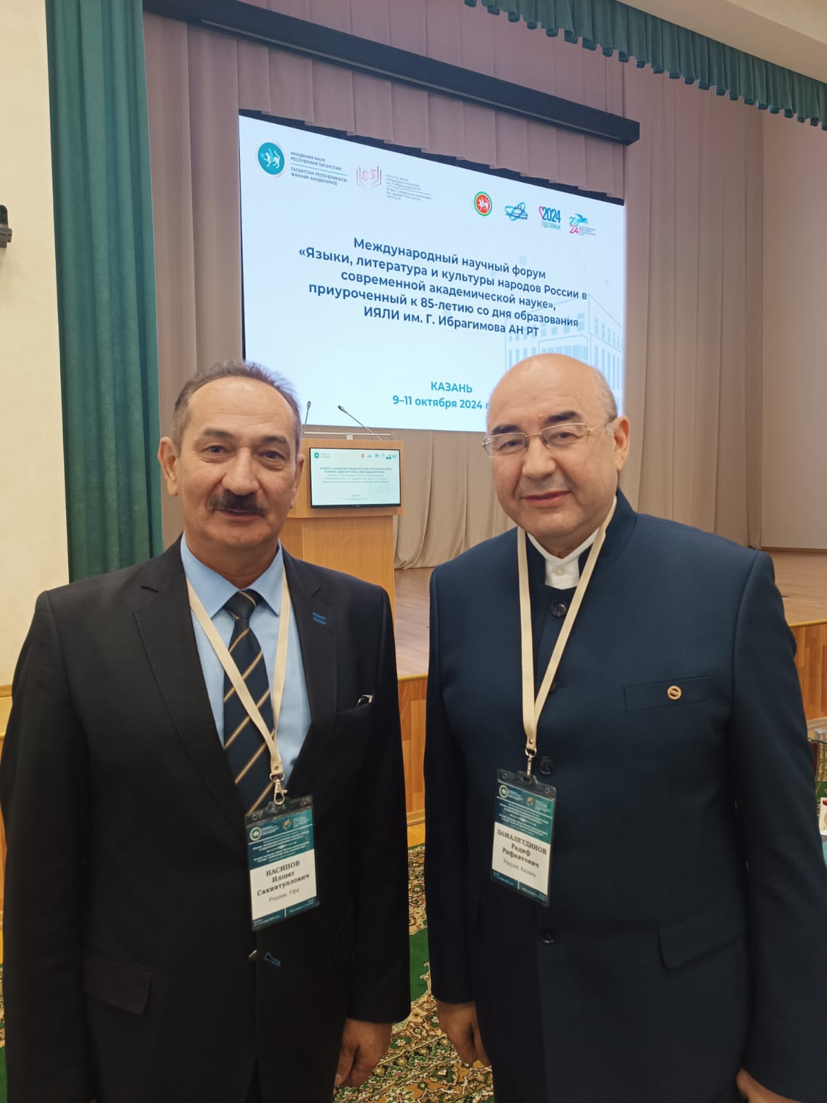9-10 октября 2024 года в Академии наук Республики Татарстан состоялись мероприятия, посвященные 85-летию Института языка, литературы и искусства им. Г. Ибрагимова АН РТ – основного научного учреждения России и мира по татарской филологии и искусству. В рамках юбилея научного учреждения состоялся Международный научный форум «Языки, литературы и культуры народов России в современной академической науке», где были запланировано проведение нескольких мероприятий: научно-практической конференции «Национальные языки и межъязыковые процессы в современном мире», научно-практического семинара «Татароведение в ситуации смены научных парадигм: теория, методология, практика», ежегодной молодежной научной школы «Татар гыйлеме» – «Татарская наука» и научно-практического семинара «Традиционное зодчество как фактор сохранения национальной идентичности». В форуме приняли участие более 200 исследователей, среди которых – ученые из Азербайджана, Казахстана, Кыргызстана и городов России – Москва, С.-Петербург, Йошкар-Ола, Чебоксары, Ижевск, Уфа, Стерлитамак и др.