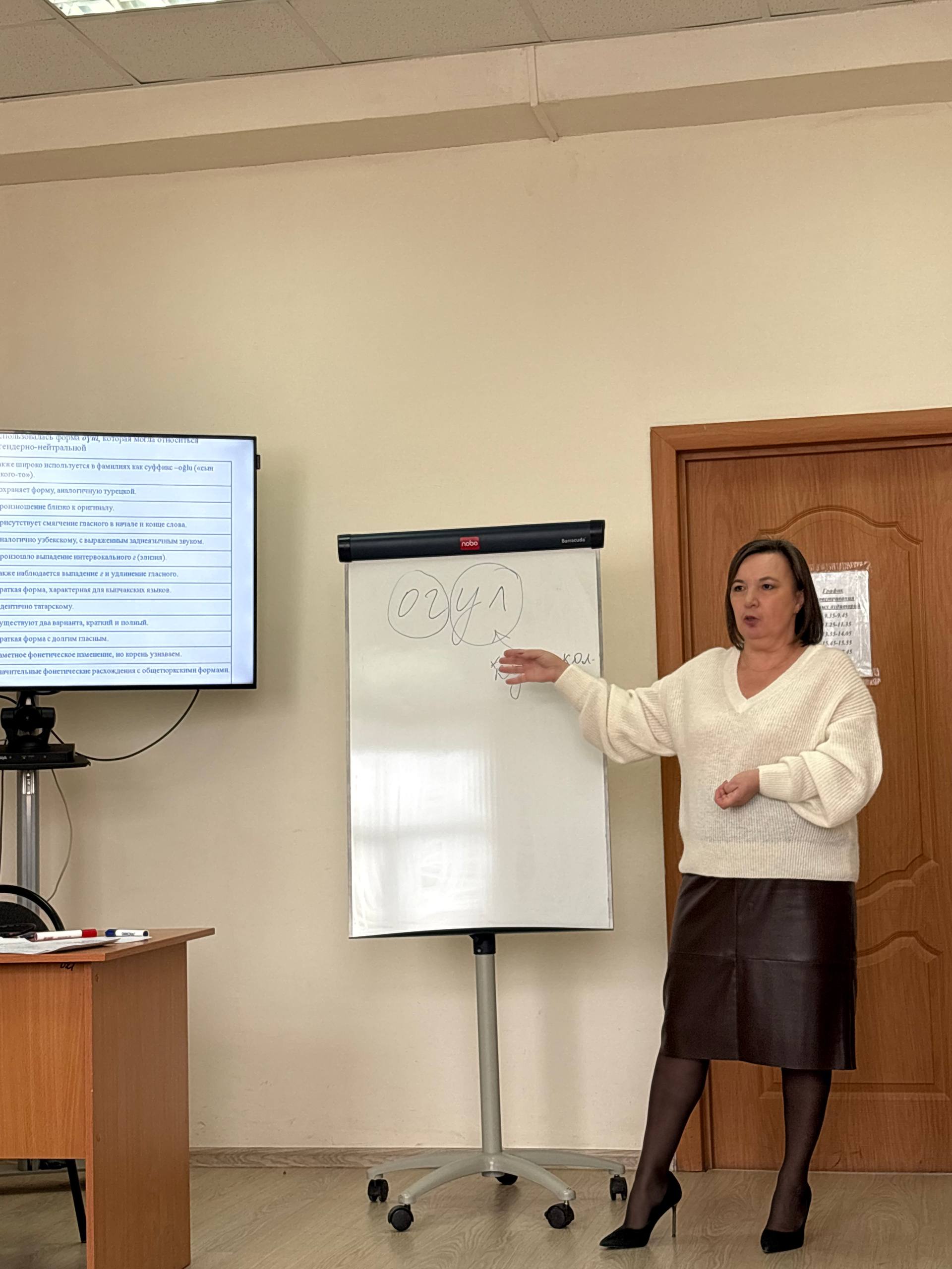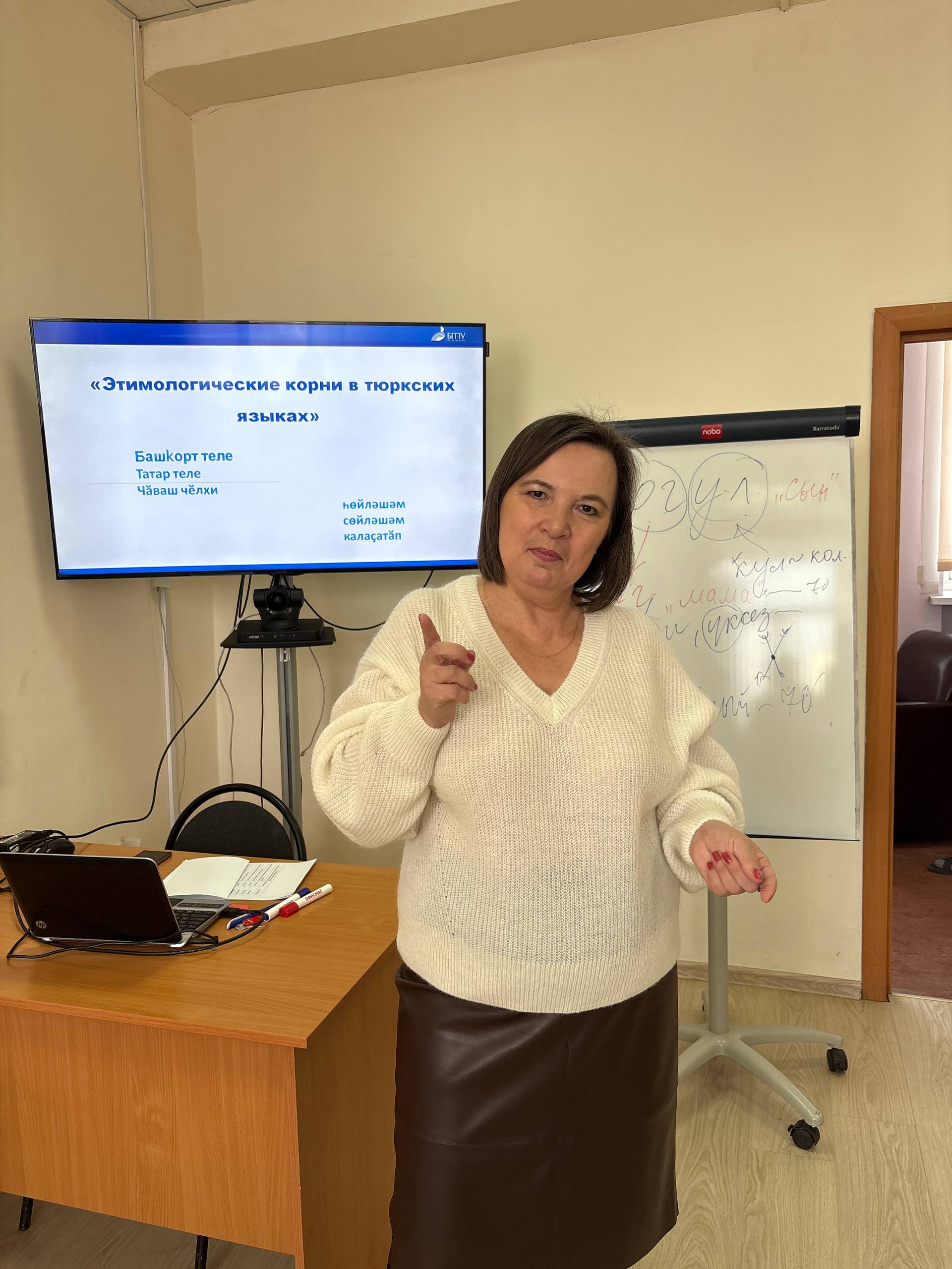 15 декабря состоялась лекция-тренинг на тему «Этимологические корни в тюркских языках», посвященная ко дню башкирского языка. Провела лекцию кандидат филологических наук, доцент Нурия Халиуллина. Она была организована в образовательно-культурном центре Института Каюма Насыри. Участниками мероприятия стали студенты Акмуллинского университета, слушатели курсов татарского языка. Нурия Усмановна провела короткий экскурс в историю одной из древнейших наук – этимологии и продемонстрировала на примере лексической единицы из татарского, башкирского языков ул «сын» процедуру этимологического анализа. Слушатели узнали о закономерностях развития слов в родственных тюркских языках, было увлекательно узнать, как отражается мировоззрение народа в языке. Лекция была с элементами тренинга, студенты и гости активно участвовали, поделились ассоциациативными, ситуативными значениями слов, впечатлениями от представленных системных связей между этимологическими корнями в тюркских языках. «Такие лекции в неформальной обстановке для нас очень важны, их нужно организовать почаще. Мы с удовольствием соберемся», – сказала студент 3 курса профиля «Родной (татарский) язык, литература» заочной формы обучения, главный специалист костюмерного цеха татарского театра «Нур» Айсылу Шайхутдинова.