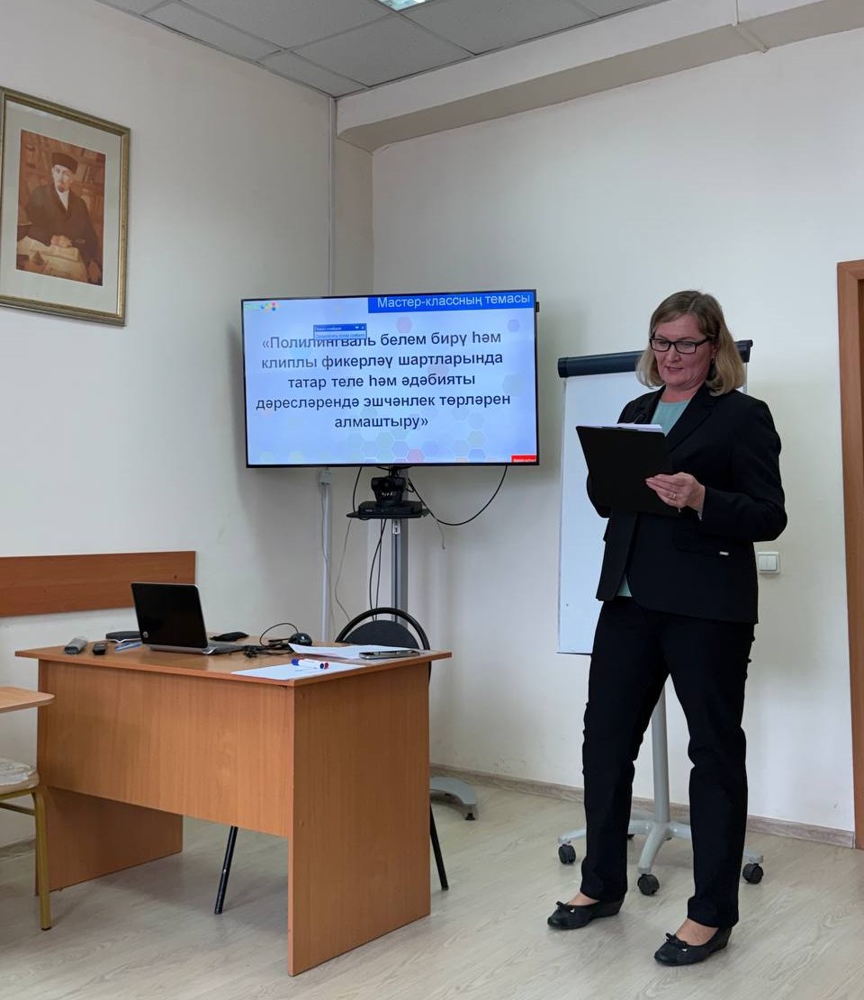 2 февраля 2026 года в рамках продолжения сотрудничества между полилингвальными образовательными организациями Республики Башкортостан и кафедрой татарского языка и литературы организован мастер- класс «Из опыта обучения родному татарскому языку и литературе в 5-9 классах». Мастер-классы провели Почетный работник просвещения и воспитания РФ, учитель татарского языка и литературы МАОУ «Полилингвальная многопрофильная школа № 23» г. Стерлитамак Римма Галиева и Отличник образования Республики Башкортостан, заместитель директора по учебной работе МАОУ «Полилингвальная многопрофильная школа-интернат» г. Нефтекамск Рузиля Нурова. В мероприятии приняли участие студенты 3-5 курсов направления подготовки Педагогическое образование (с двумя профилями подготовки), учителя МАОУ «Татарская гимназия № 84» г. Уфы и преподаватели кафедры. Директор института филологического образования и межкультурных коммуникаций Халида Галимова в приветственном слове отметила, что «Акмуллинский университет с 2021 года по заданию Министерства просвещения России ведет работу по внедрению единой образовательной модели в полилингвальном образовании. Работа вуза в данном направлении оценена на самом высоком уровне. За эти годы лингвистами университета разработаны методические рекомендации, учебно-тематические планы по типу конструктора для школ региона, созданы трехъязычные словари, мобильное приложение, диагностический инструментарий для определения уровня компетенций, внедрена программа повышения квалификации учителей». В декабре 2025 года Глава Республики Р.Ф. Хабиров поддержал идею создания на базе Акмуллинского университета Всероссийского научно-методического центра для поддержки и развития полилингвального образования. На сегодняшний день только в региональную сеть полилингвальных школ входят 11 передовых образовательных учреждений, географически расположенных в разных городах и районах республики. Учатся там 11 тысяч детей, обучение ведется в том числе на башкирском, татарском, чувашском, удмуртском, марийском языках.