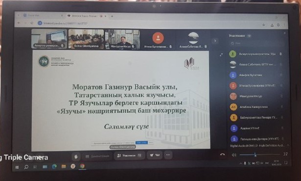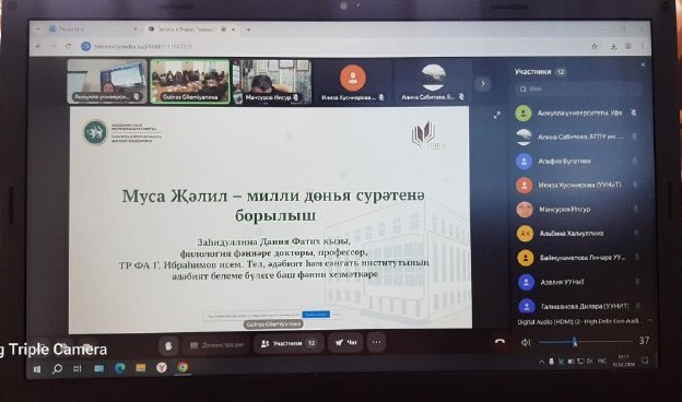 В круглом столе в онлайн формате участвовали преподаватели кафедры татарского языка и литературы Акмуллинского университета, студенты направления “Педагогическое образование” направленность (профиль) “Родной (татарский) язык, литратура и английский язык” института филологического образования и межкультурных коммуникаций. Открыл круглый стол директор ИЯЛИ им.Г.Ибрагимова АН РТ Илгиз Халиков, приветственным словом выступил народный писатель Татарстана, главный редактор издательства «Язучы» при Союзе писателей РТ Газинур Мурат. Докладами выступили доктор филологических наук, главный научный сотрудник отдела литературоведения ИЯЛИ им.Г.Ибрагимова Дания Загидуллина, доктор филологических наук, зав. отделом литературоведения ИЯЛИ им.Г.Ибрагимова Альфат Закирьянов, доктор филологических наук, профессор кафедры литературоведения КФУ Нурфия Юсупова, кандидат филологических наук, главный научный сотрудник отдела литературоведения ИЯЛИ им.Г.Ибрагимова Лейсан Галиева, кандидат искусствоведения, ведущий научный сотрудник Центра искусствоведения Института языка, литературы и искусства им. Г. Ибрагимова Ольга Улемнова. Были затронуты разные аспекты изучения литературного наследия Мусы Джалиля, его место в национальной картине мира, раскрыты интересные факты из жизни поэта, идеи гуманизма в творчестве, отражение образа поэта в искусстве.