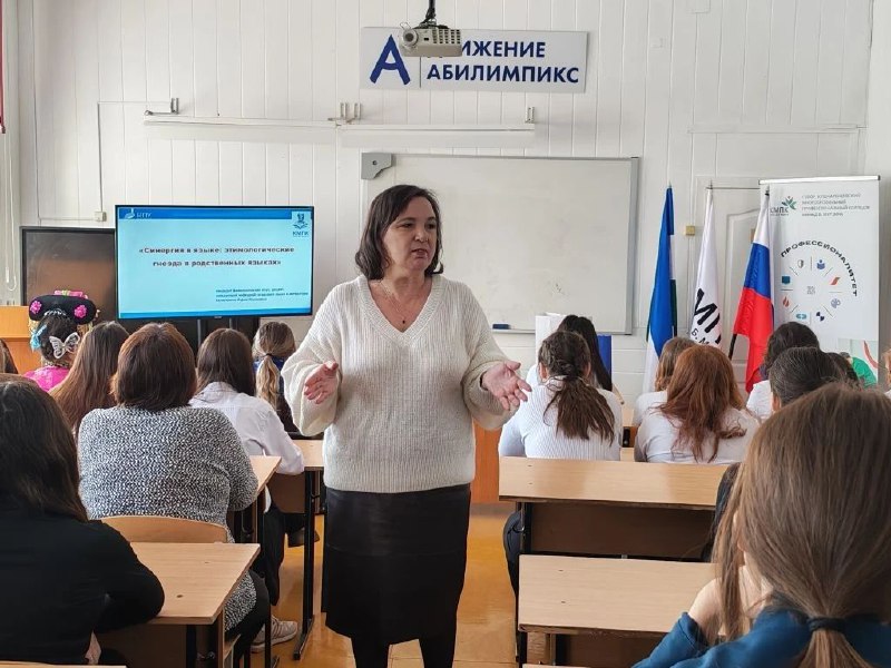 5 марта 2026 года в Кушнаренковском многопрофильном профессиональном колледже имени Д.Б. Мурзина была организована профориентационная встреча. В мероприятии участвовали студенты института филологического образования и межкультурных коммуникаций, зав. кафедрой татарского языка и литературы Акмуллинского университета Нурия Халиуллина. Для студентов колледжа специальности «Преподавание в начальных классах», «Дошкольное образование», также «Пожарная безопасность», обучающихся 11 класса МБОУ СОШ  № 1 имени Героя Советского Союза В.Д. Паширова с. Кушнаренково была подготовлена насыщенная программа. Нурия Усмановна провела лекцию-тренинг на тему «Синергия в языке: этимологические гнезда в родственных языках», где были представлены очень интересные примеры о происхождении слов и лексической системе татарского и других тюркских языков. Также она познакомила будущих абитуриентов с правилами приема в БГПУ им.М.Акмуллы в 2026 году, представила образовательные программы института филологического образования и межкультурных коммуникаций и рассказала о деятельности кафедры татарского языка и литерауры и направлениях подготовки на кафедре.