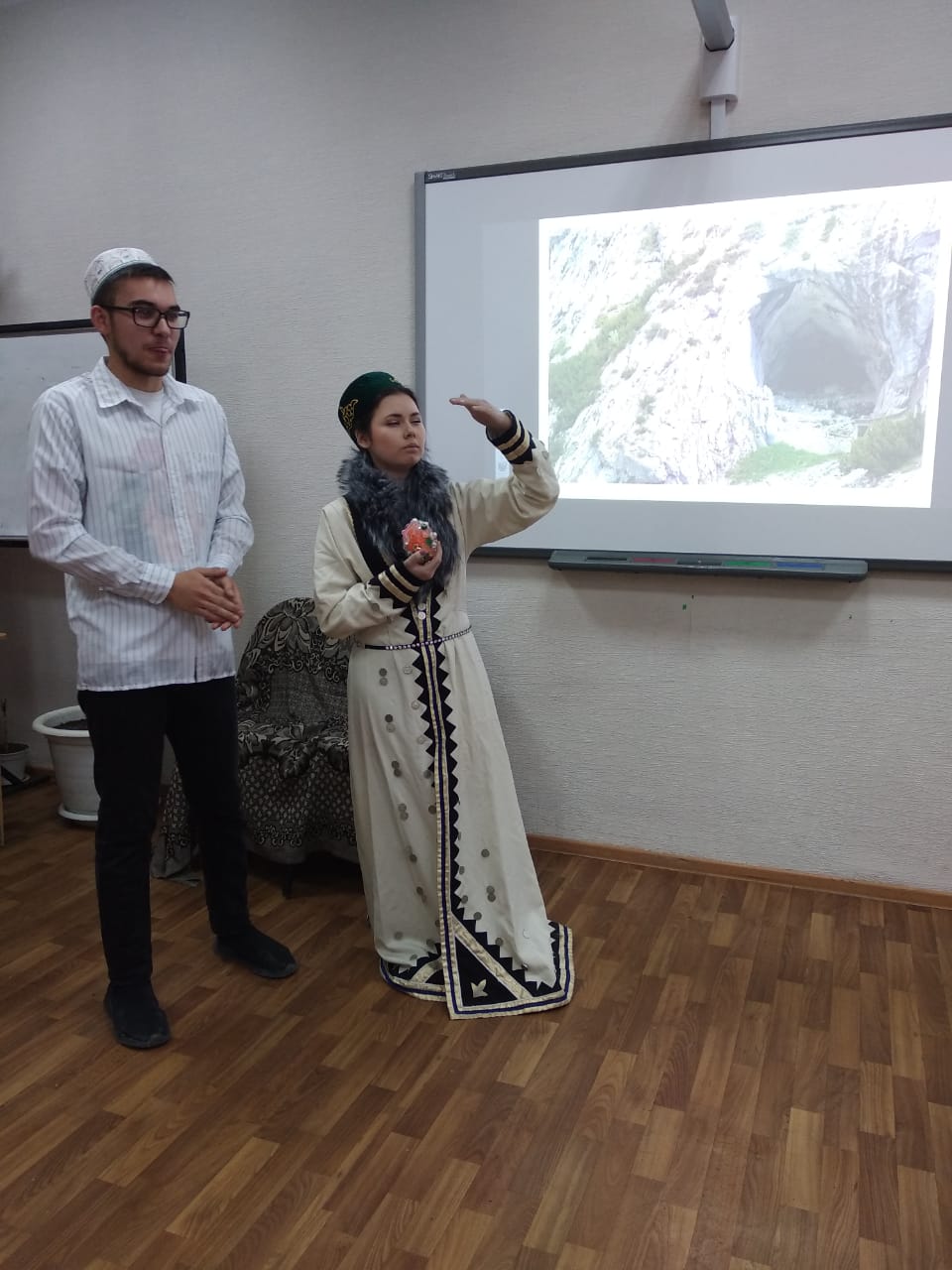 27 ноября студенты первого курса группы ПОТЯВ-105-18 ИФОМК успешно сдали контрольную точку по дисциплине «Татарское устное народное творчество» (преподаватель – Н.У.Халиуллина). Каждым студентом в течение семестра был собран богатый и интересный материал по жанрам татарского фольклора. Большинство из них были собраны в сельской местности – на малой родине студентов. Используя оригинальный собранный материал, они поставили сценку. За основу была взята татарская народная сказка «Зирәк карт» («Смекалистый дед»).