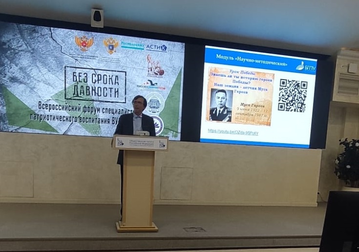 Рустам Алмаев выступил в качестве спикера в дискуссионной секции эффективных технологий воспитания. В ходе своего выступления Рустам Закирович представил патриотический проект БГПУ им.М.Акмуллы. Он поделился опытом патриотического воспитания студентов вуза на примере работы «Научно-образовательной лаборатории патриотического воспитания молодежи и истории казачества».