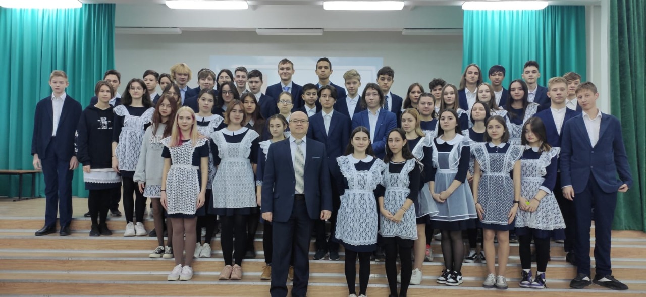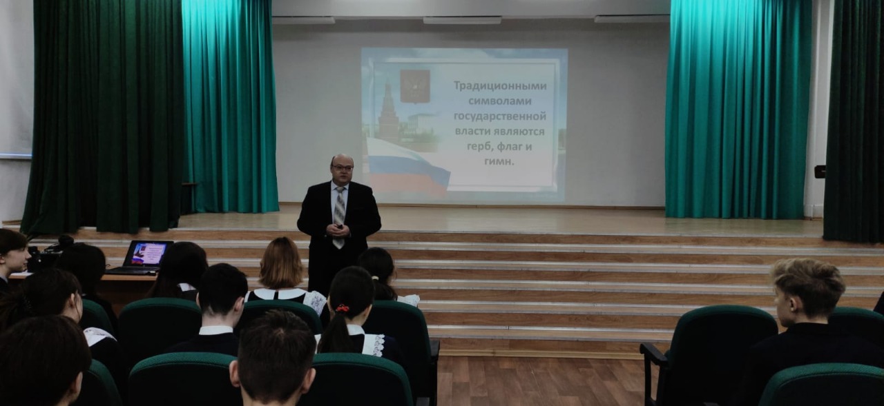 Перед старшеклассниками  выступил доцент кафедры Отечественной истории Ильдар Нариманович Баишев. На занятии были изучены государственные символы России, в частности, герб, флаг, гимн, их разновидности и краткая история их становления. На различных примерах исторического развития символики учащиеся проследили связь государственных символов с основными событиями в нашей стране, складывавшимися на протяжении столетий не только политических, но и духовно-нравственных ценностей.