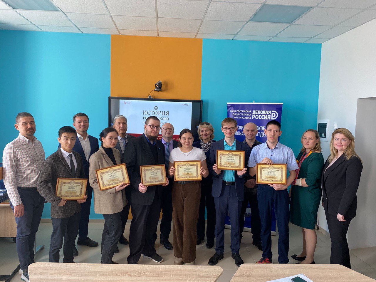 В торжественной обстановке  Айдар Зубаиров и Айдар Галин вручили призерам регионального этапа Олимпиады почетные дипломы и ценные призы, а также благодарственные письма членам оргкомитета и преподавателям вузов за активное участие в организации и проведении регионального этапа Всероссийской Олимпиады по истории российского предпринимательства в Республике Башкортостан. От кафедры Отечественной истории в Оргкомитет Олимпиады вошли И.Н. Баишев и А.И. Кортунов. Все студенты и аспиранты, принявшие участие в Олимпиаде, получили сертификаты участника.