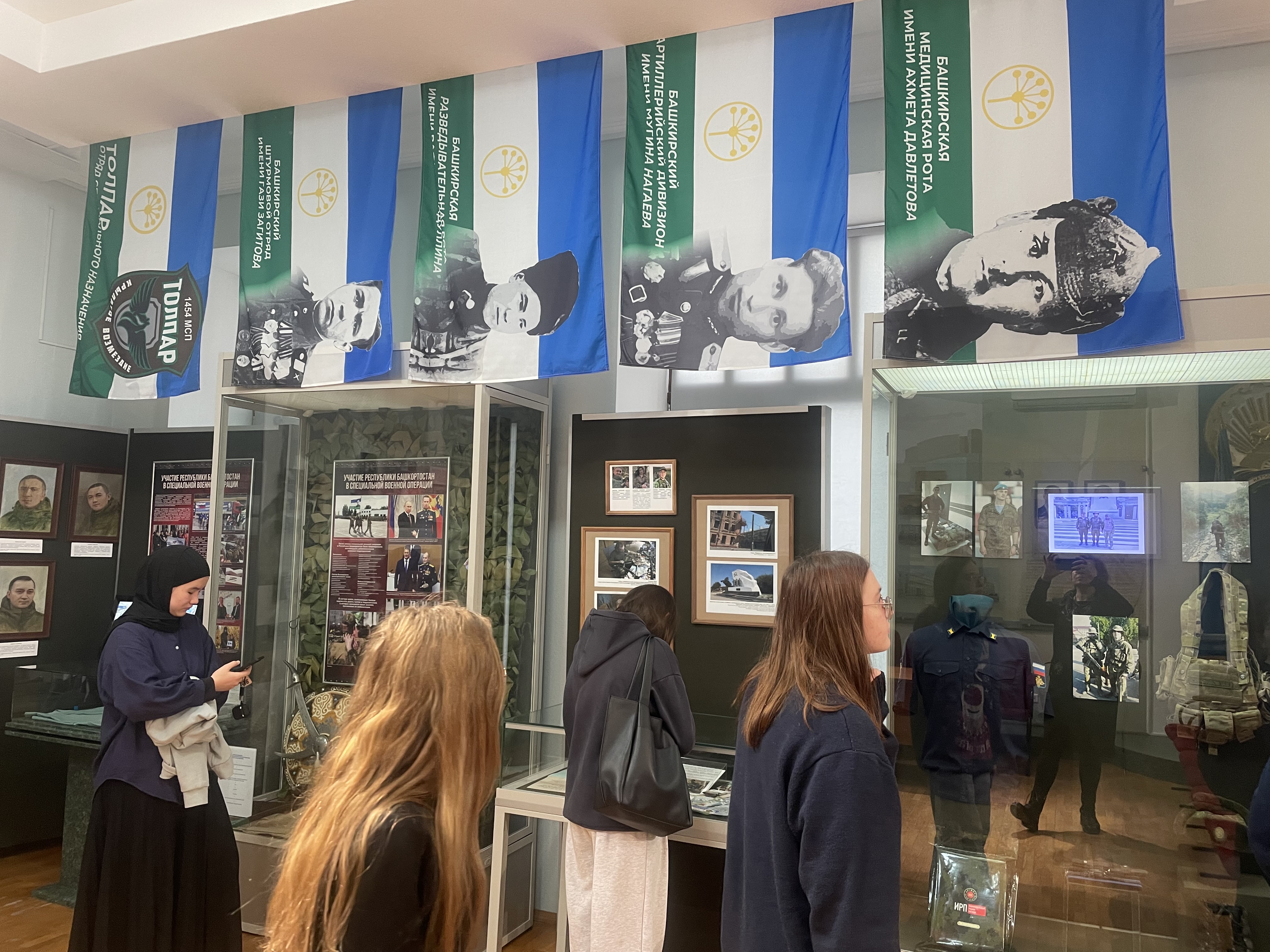 Завершается год 80-летия Великой Победы. Студенты 1 курса института физики, математики, цифровых и нанотехнологий, обучающиеся по направлению «Педагогическое образование», профиль «Математика»,  экспозиции Национального музея Республики Башкортостан, посвященные военным событиям. Преподаватель кафедры отечественной и всеобщей истории доцент А. И. Чигрина провела беседу – экскурсию по этому героическому периоду, рассказав о подвигах наших земляков: генерала Минигали Шаймуратова, лётчика Мусы Гареева и других героев. Студенты познакомились с обновлённой экспозицией по истории Великой Отечественной войны, с экспонатами, повествующими  боевых и трудовых подвигах жителей республики. В ходе беседы были проведены параллели с современными событиями, когда нашим соотечественникам приходится снова защищать страну от нацизма. Это показывает экспозиция, посвященная специальной военной операции и подвигам земляков – современников.