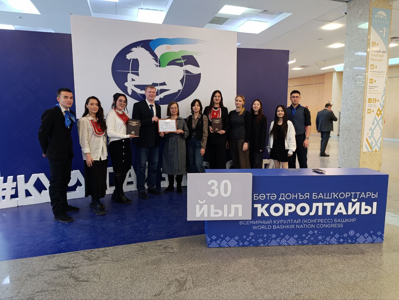 11 декабря прошла Международная научно-практическая конференция «Всемирный курултай башкир: 30 лет народной дипломатии - общественные коммуникации в оптике международного и межрегионального взаимодействия». Площадкой конференции стал Конгресс-Холл «Торатау», в фойе которого работали выставки книг, национальной одежды, инструментов посуды, была организована выставка Национального архива Республики Башкортостан и пр. Национальная библиотека презентовала информативную книжную выставку «Духовное наследие башкирского народа», где среди прочего были представлены редкие издания.