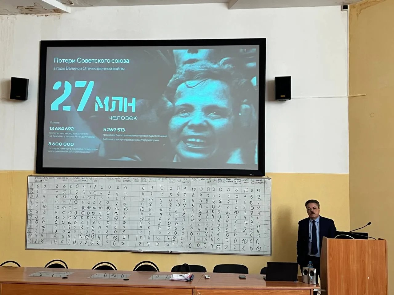 Доцент кафедры отечественной и всеобщей истории Алексей Иванович Кортунов организовал просмотр и обсуждение фильма «Каракурт», основанного на реальных событиях времен Великой Отечественной войны, со студентами института физики, математики, цифровых и нанотехнологий (группами ИСИТ-11-25, ПИНФ_ПИЦЭ-11-25, ЭИН_ПЭИС-11-25). В фильме, снятом в жанре документальной драмы, рассказывается о массовом несправедливо забытом акте геноцида, унесшем более 700 человеческих жизней в октябре–ноябре 1941 года на территории Лотошинского района Московской области. Это эксклюзивный медиапроект, в создании которого принимали участие сотрудники архивов, реконструкторы и историки, а также выживший очевидец трагических событий, который был в то время ребенком.