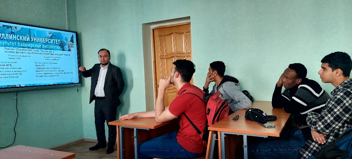 12-14 апреля 2023 года продолжилось знакомство слушателей подготовительного отделения для иностранных граждан с факультетами и институтами БГПУ им. М. Акмуллы. 12 апреля иностранные граждане посетили художественно-графический факультет и институт физической культуры и здоровья человека, 13 апреля состоялась презентация программ института филологического образования и межкультурных коммуникаций и факультета башкирской филологии, 14 апреля были представлены программы института педагогики и факультета психологии. Все факультеты и институты рассказали о своих программах бакалавриата, магистратуры и аспирантуры и показали иностранным гражданам лекционные и учебные аудитории, лаборатории со специальным оборудованием, аудитории для формирования у студентов профессиональных компетенций. На факультете психологии слушателям продемонстрировали оборудование для определения психофизиологических свойств нервной системы человека и провели медитацию в комнате отдыха.