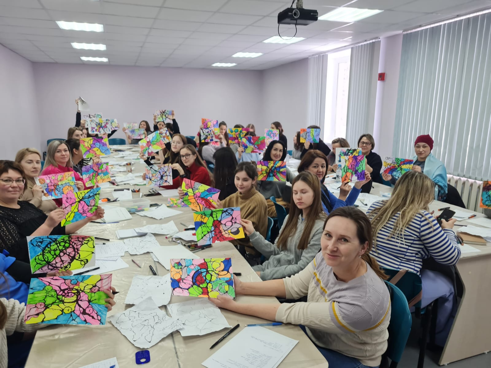 На мастер-классе «Нейрографика: психологический ресурс для родителей» кандидат психологических наук, доцент кафедры возрастной и социальной психологии БГПУ им. М. Акмуллы, практикующий психолог Ольга Макушкина родители познакомились с этим популярным сейчас методом работы.