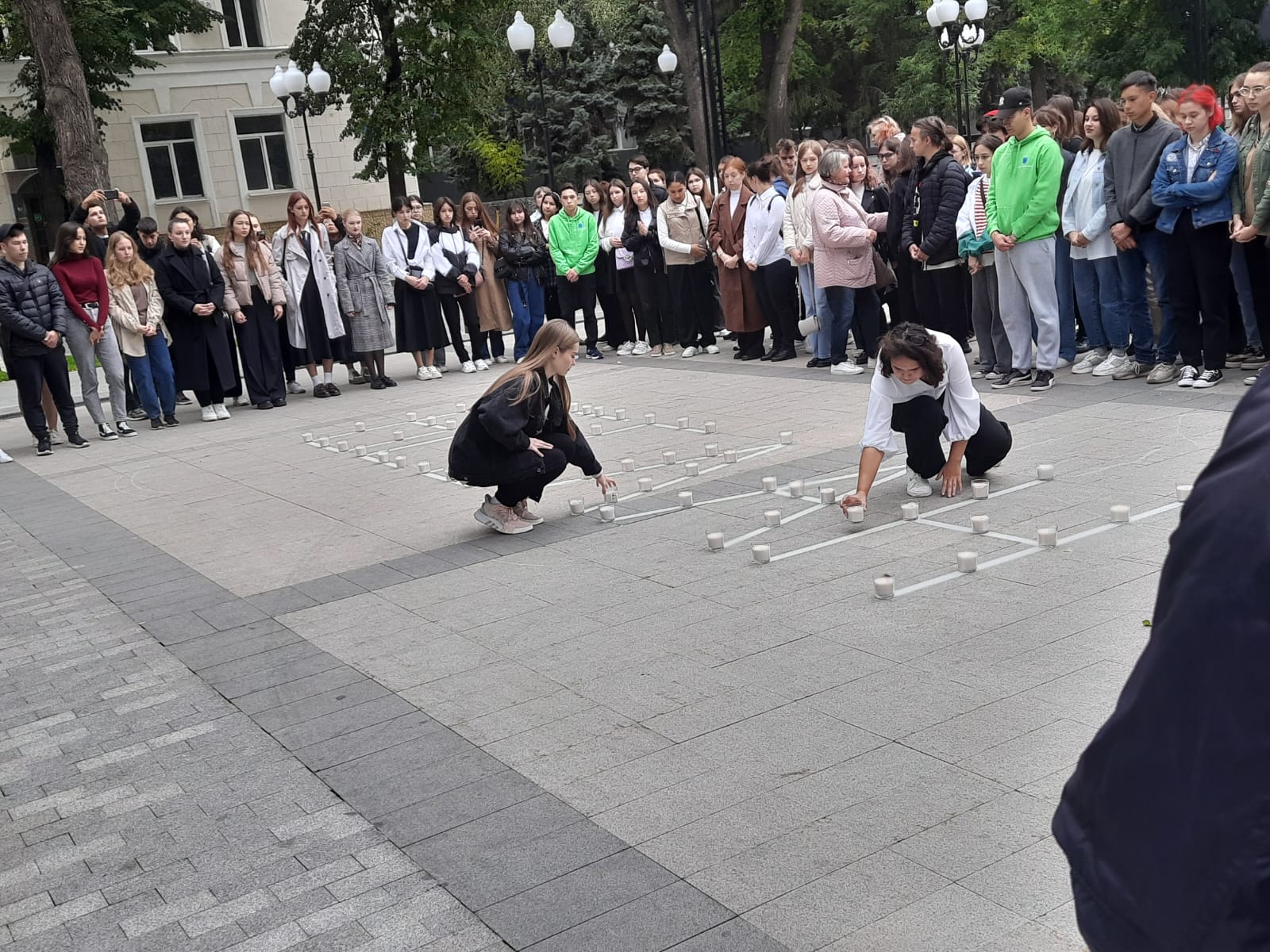 Студенты выложили слово "Беслан" из свеч в память о жертвах. А также была объявлена минуту молчания.