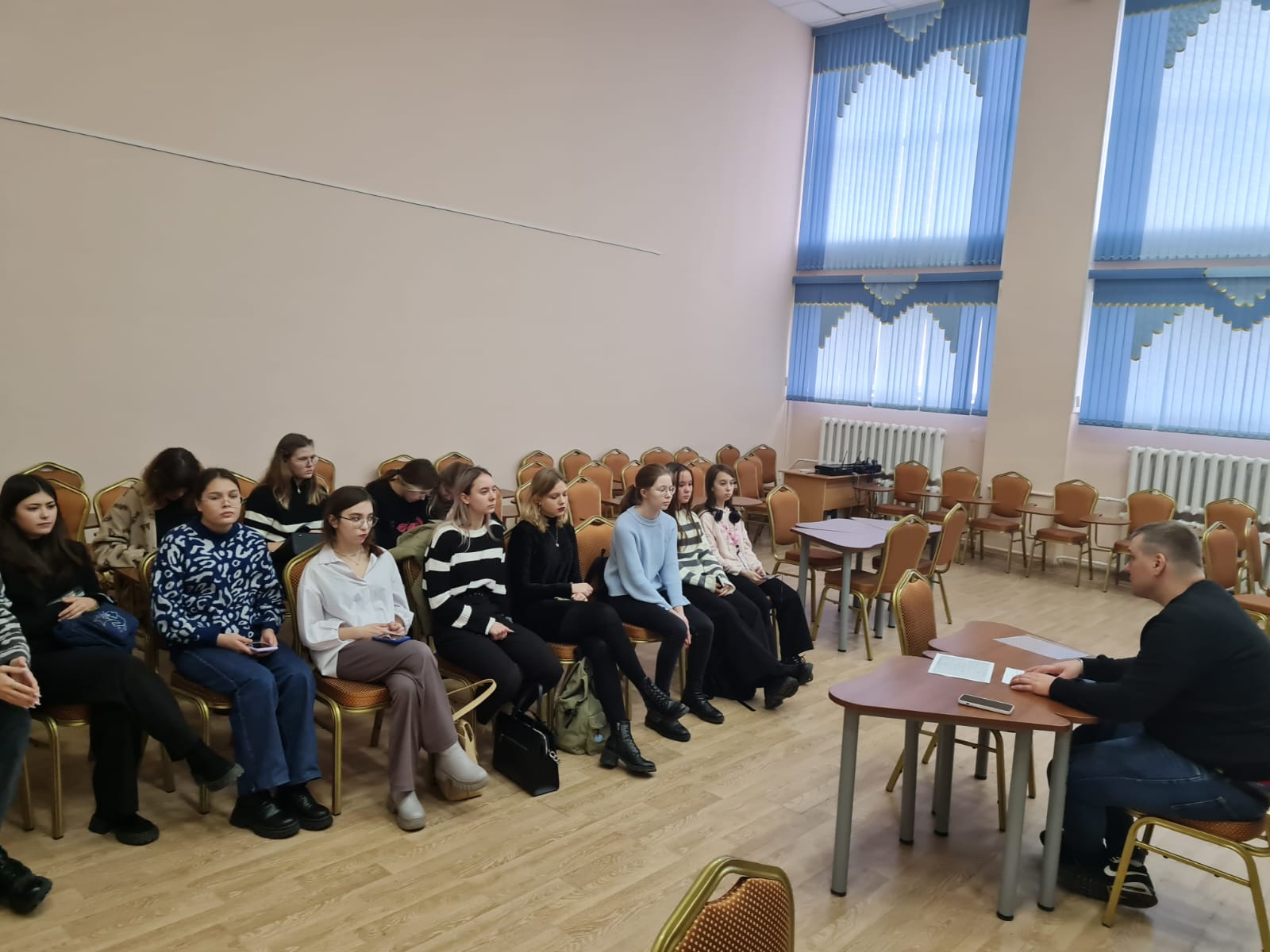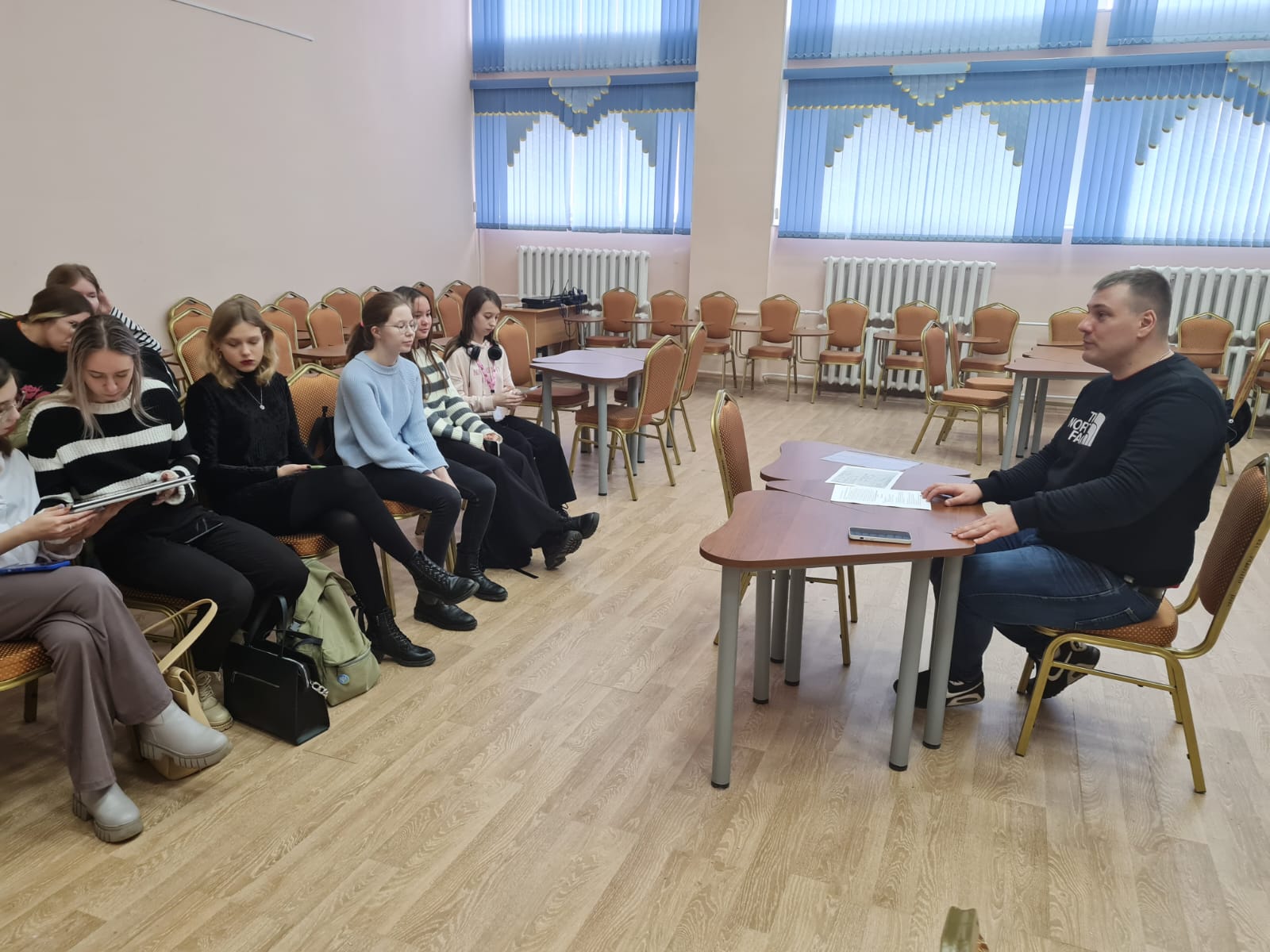 Никита Кудрявцев общался со студентами 1 курса (ПКМС) на тему: «Зависимости как проблема современного общества». Ребята обсуждали причины возникновения зависимостей; на что обратить внимание для, чтобы не попасть в эти рамки. Студенты также узнали, как в реабилитационном центре можно работать и помогать людям с аддиктивным поведением.