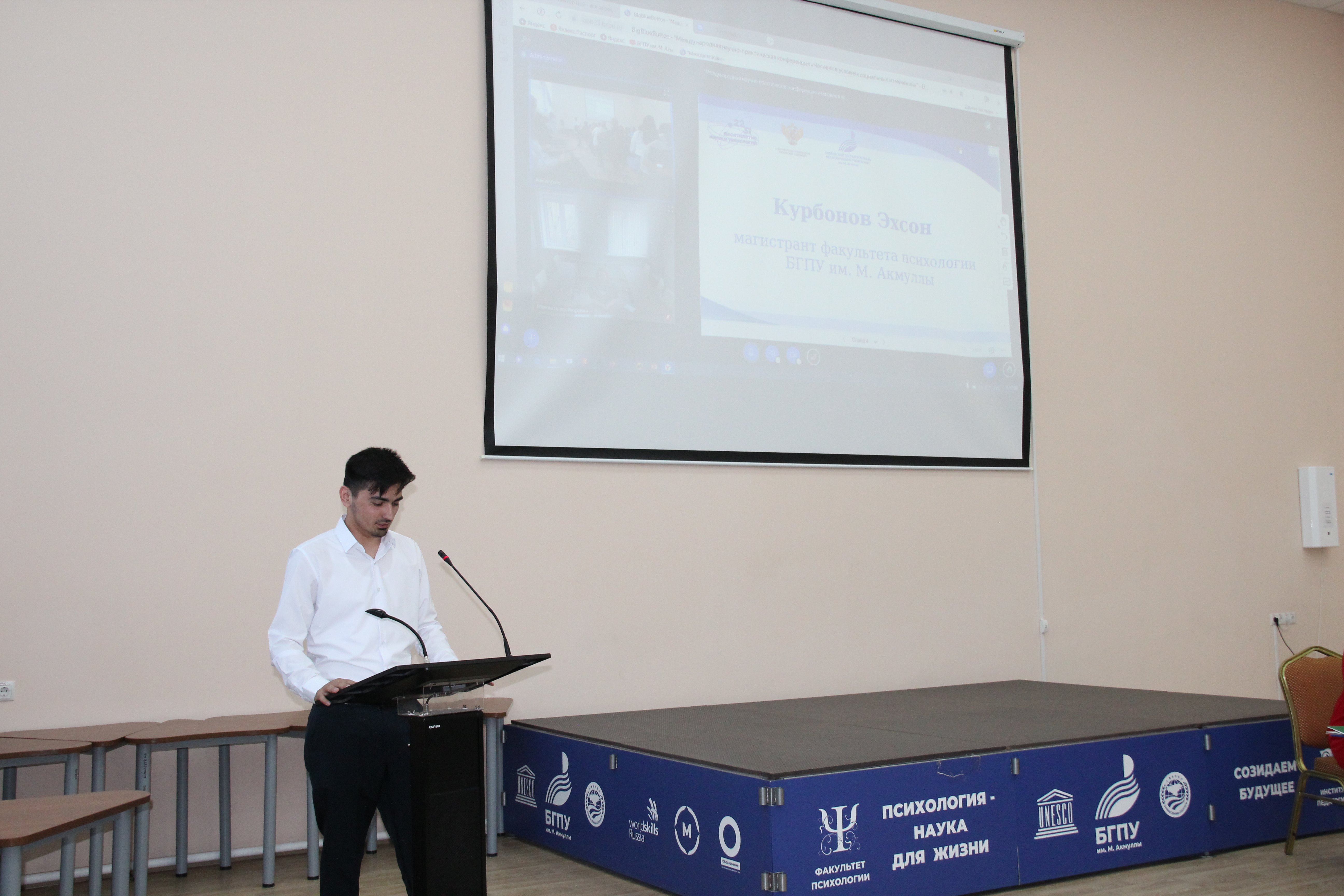 Для приветствия слово дали студентам факультета психологии Курбонову Эхсону, магистранту из Таджикистана и Аскат кызы Жээнкул, студентке из Киргизии.
