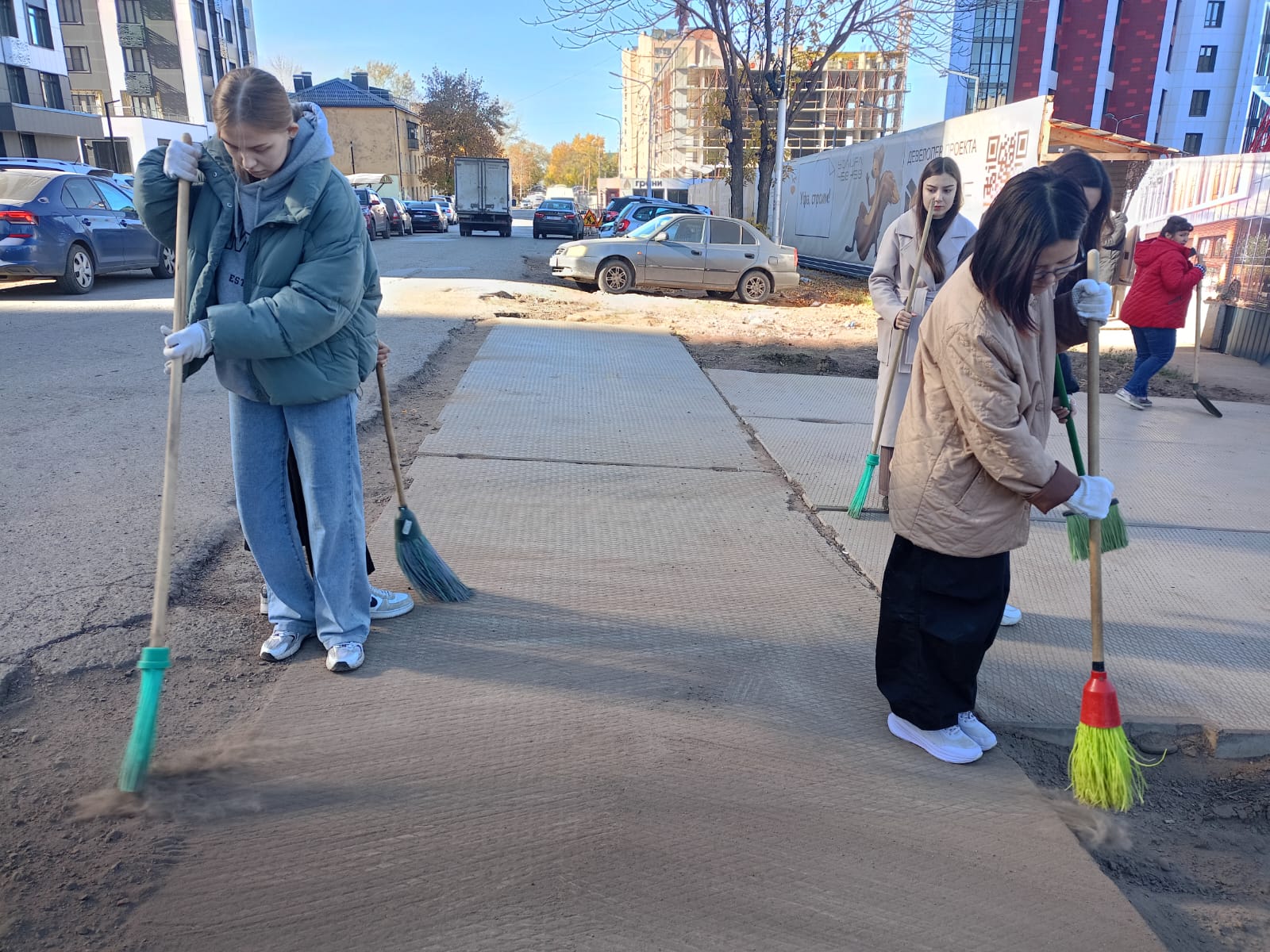 Дружные студенты 1 курса направление подготовки "Психолого-педагогическое образование" профиль "Психологическое консультирование и медиация в социальной сфере", вооружившись инвентарем, привели в порядок прилегающую территорию учебного корпуса, очистили тротуары и обочины дорог от мусора.