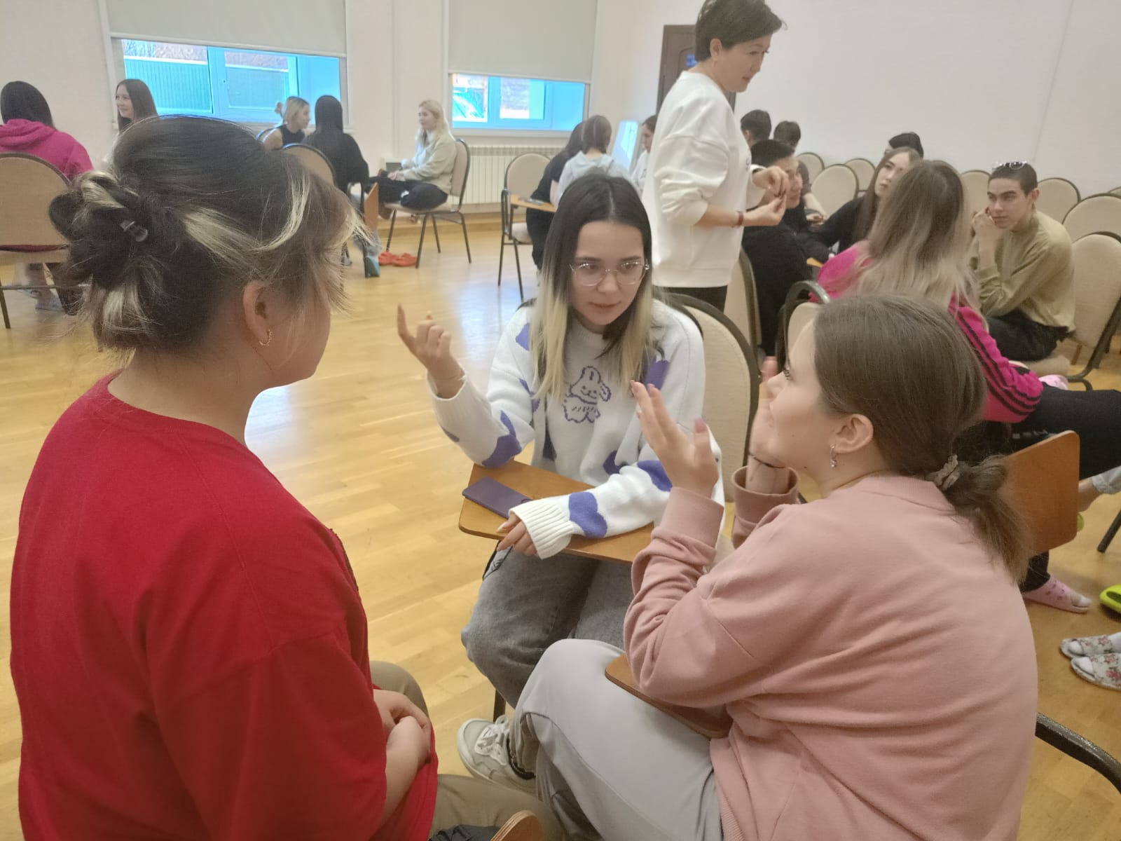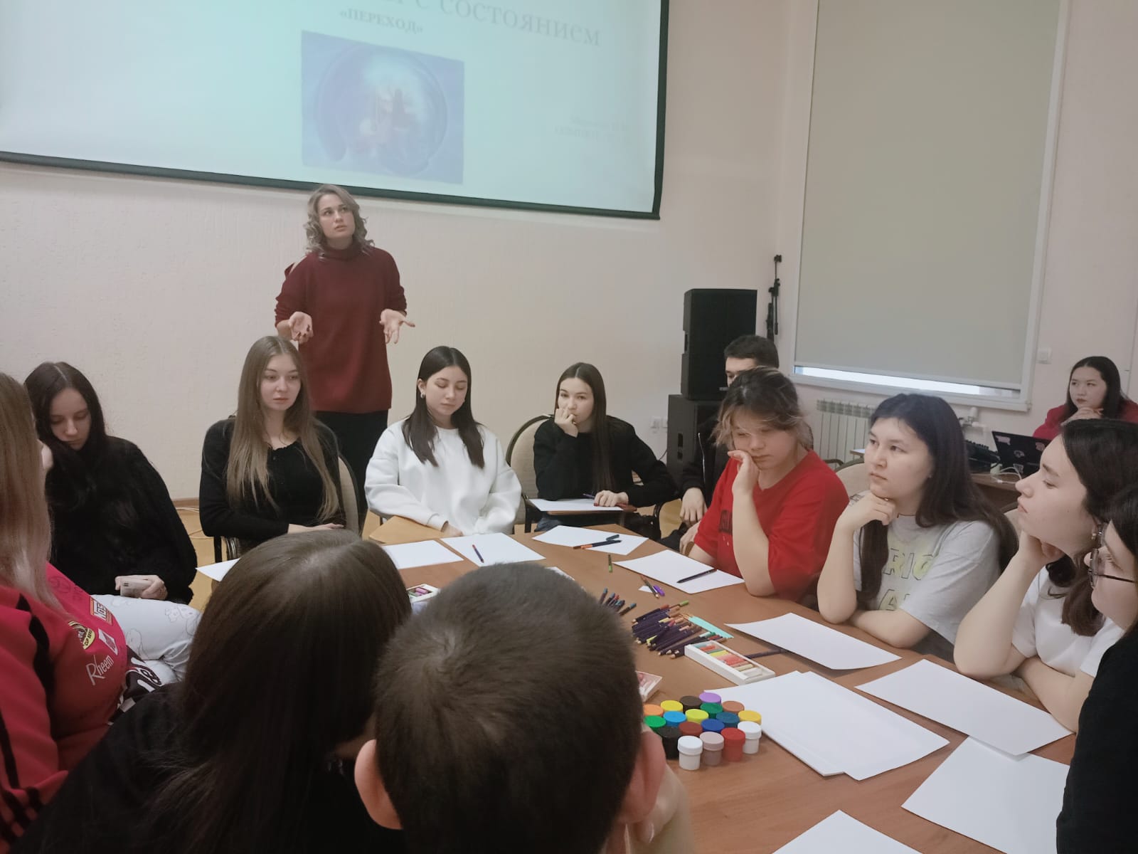Установлению контактов и выражению своей позиции, мысли способствовали тренинги студента 3 курса Павла Рудявко.