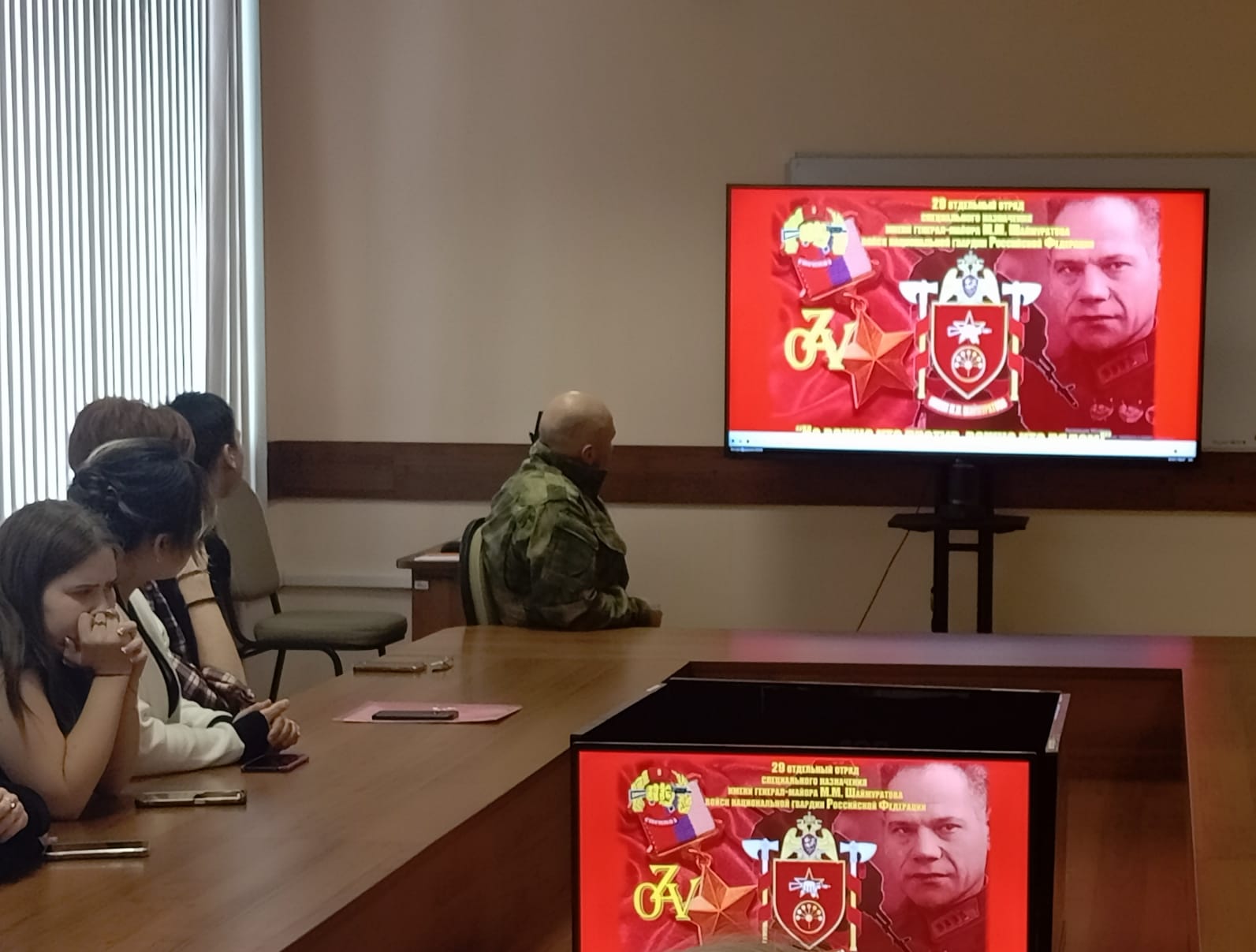 Гость мероприятия Илья Красных рассказал о своей военной службе в рамках военной операции в Сирии и СВО. Представленный им видеофильм позволил студентам познакомиться с характером и напряженностью военной службы в отряде специального назначения им. генерала-майора М.Шаймуратова.