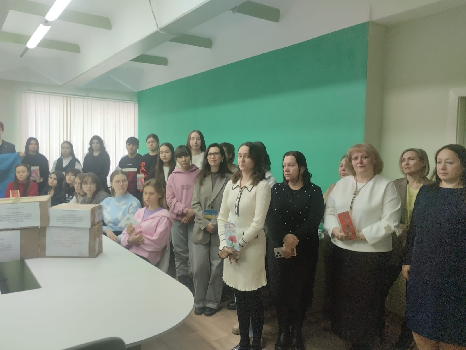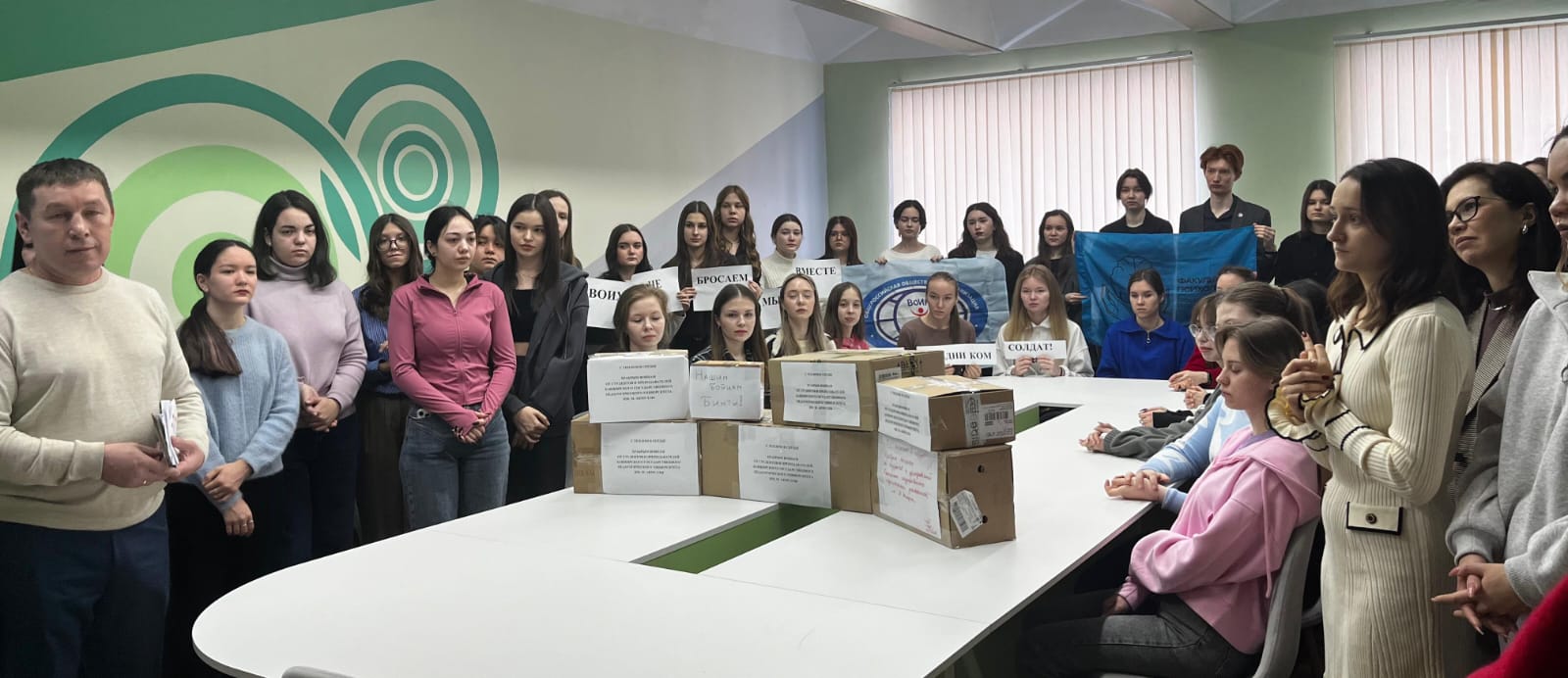 8 февраля на факультете психологии состоялась церемония передачи писем, поздравительных открыток, медицинских бинтов, влажных салфеток, сладких подарков для участников СВО в честь Дня Защитника Отечества.