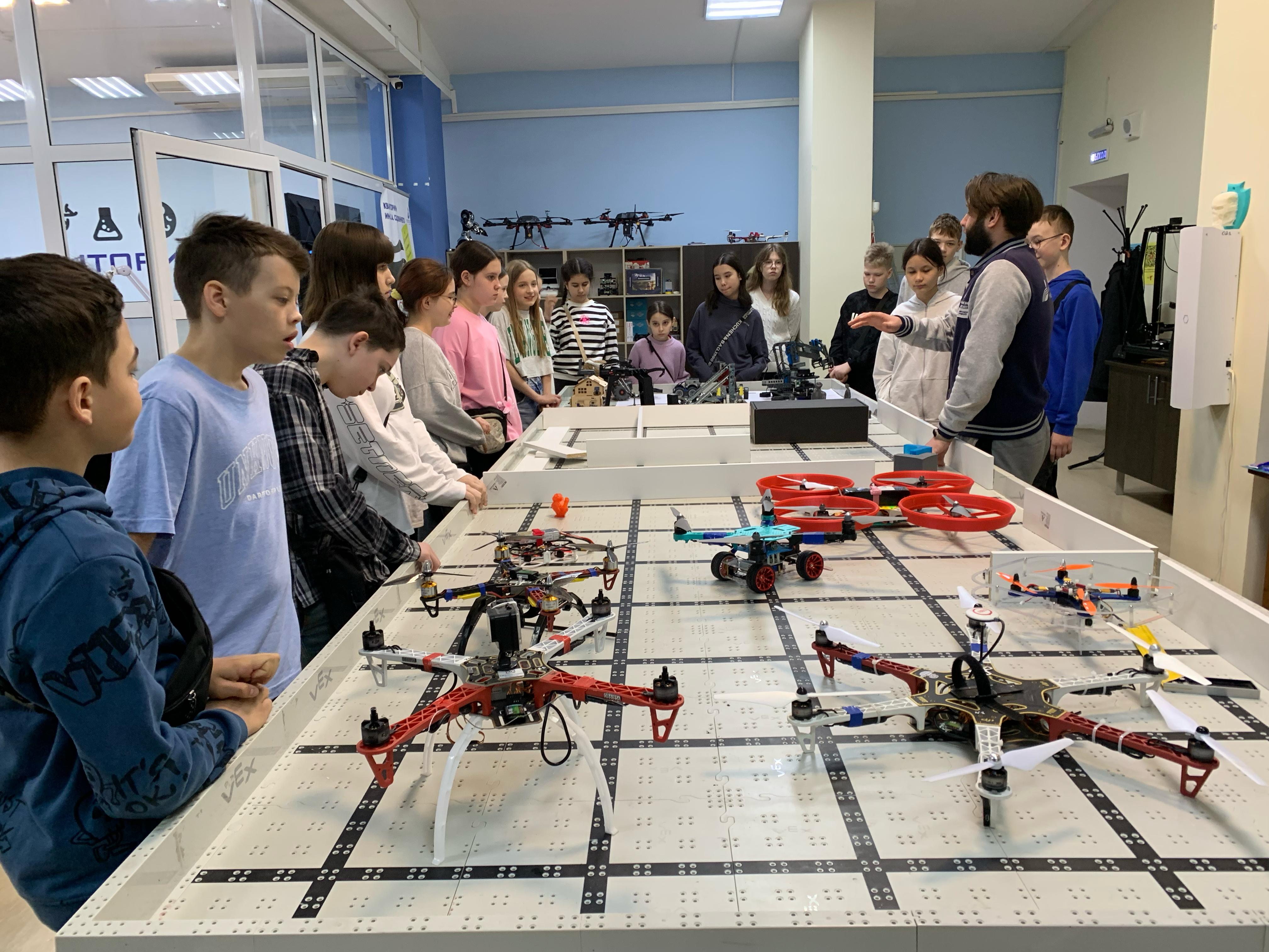 В Институте физики, математики, цифровых и нанотехнологий гостей ждало настоящее технологическое путешествие. Лаборант кафедры физики и нанотехнологий  Дмитрий Шерышев, инженер-исследователь молодежной лаборатории «Прикладная физика и технологии наносенсорики» Артур Яхин и  студент института Дмитрий Белокуров познакомили ребят с оснащением лаборатории дополненной реальности, научно-исследовательским и технологическим оборудованием, учебными лабораториями инженерной и компьютерной графики, лабораториями 3D-проектирования и печати, а также продемонстрировали образцы робототехники и беспилотных летательных аппаратов.