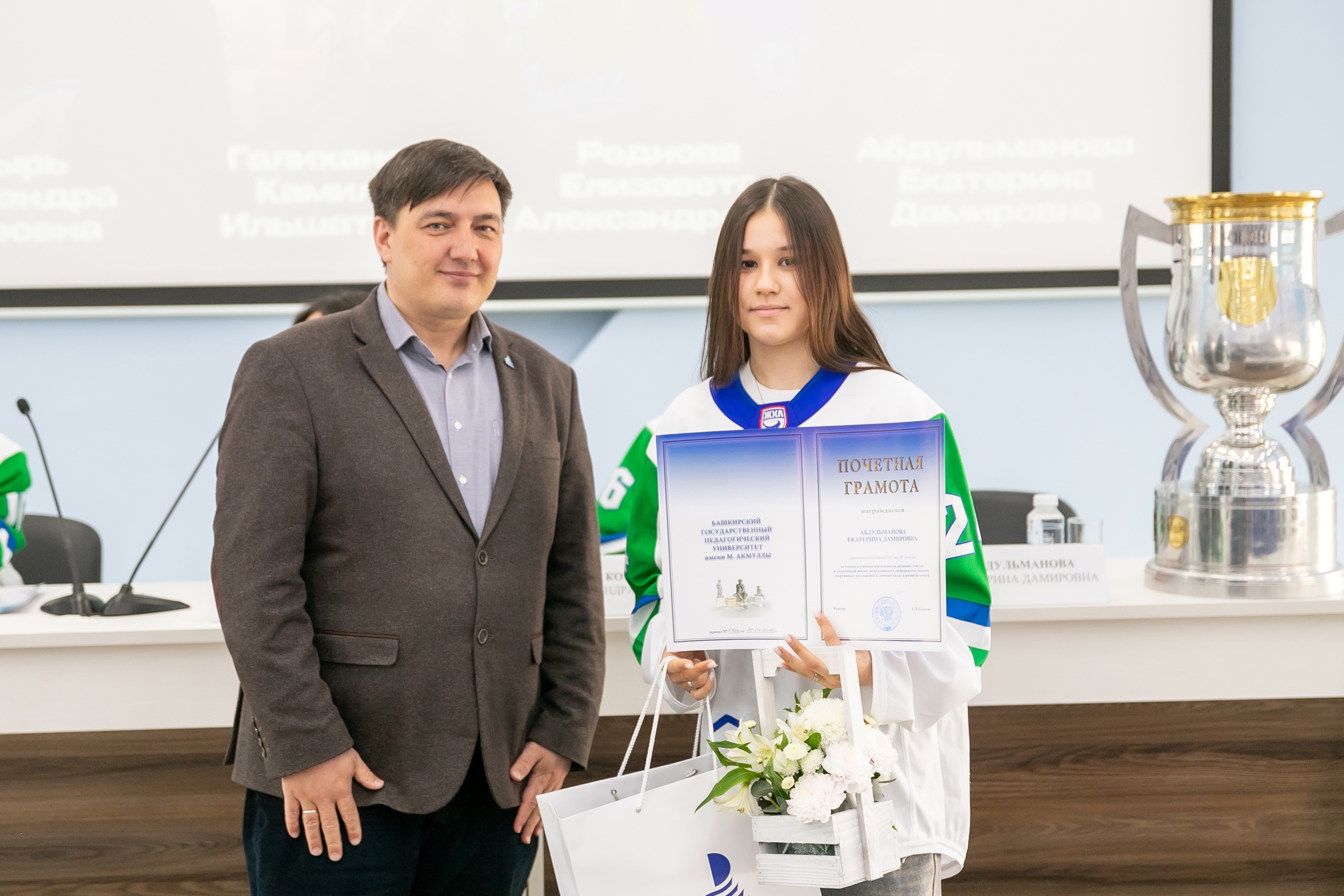 Проректор по молодежной политике и международным связям БГПУ им. М. Акмуллы Радик Юлбаев от имени руководства вуза поздравил спортсменок с победой и вручил им почетные грамоты университета.