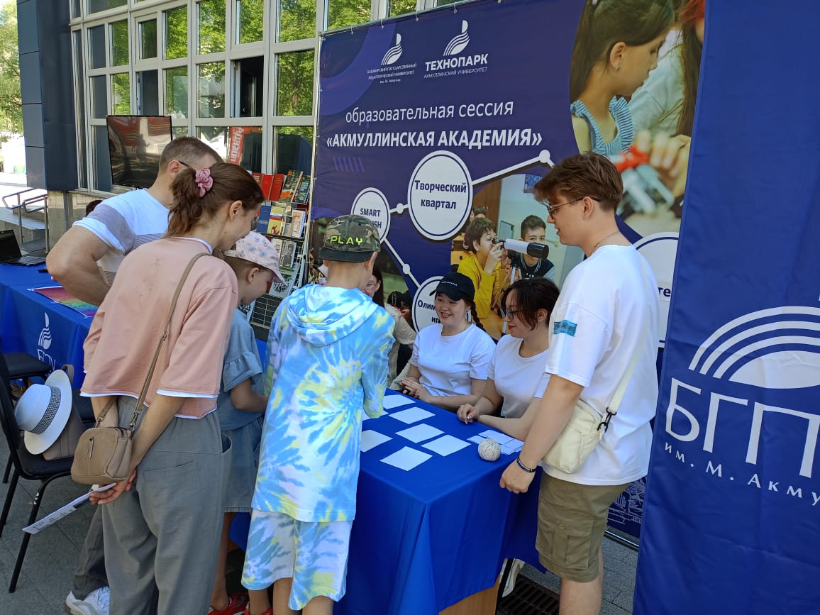 В рамках деятельности площадки Акмуллинского университета 31 мая студенты 1 курса профиль «Практическая психология в образовании и бизнесе» под руководством заместителя декана по воспитательной работе и молодежной политике Гульсасак Сибаевой организовали для взрослых и детей подвижные и настольные психологические игры на развитие внимания, памяти, мышления, воображения.