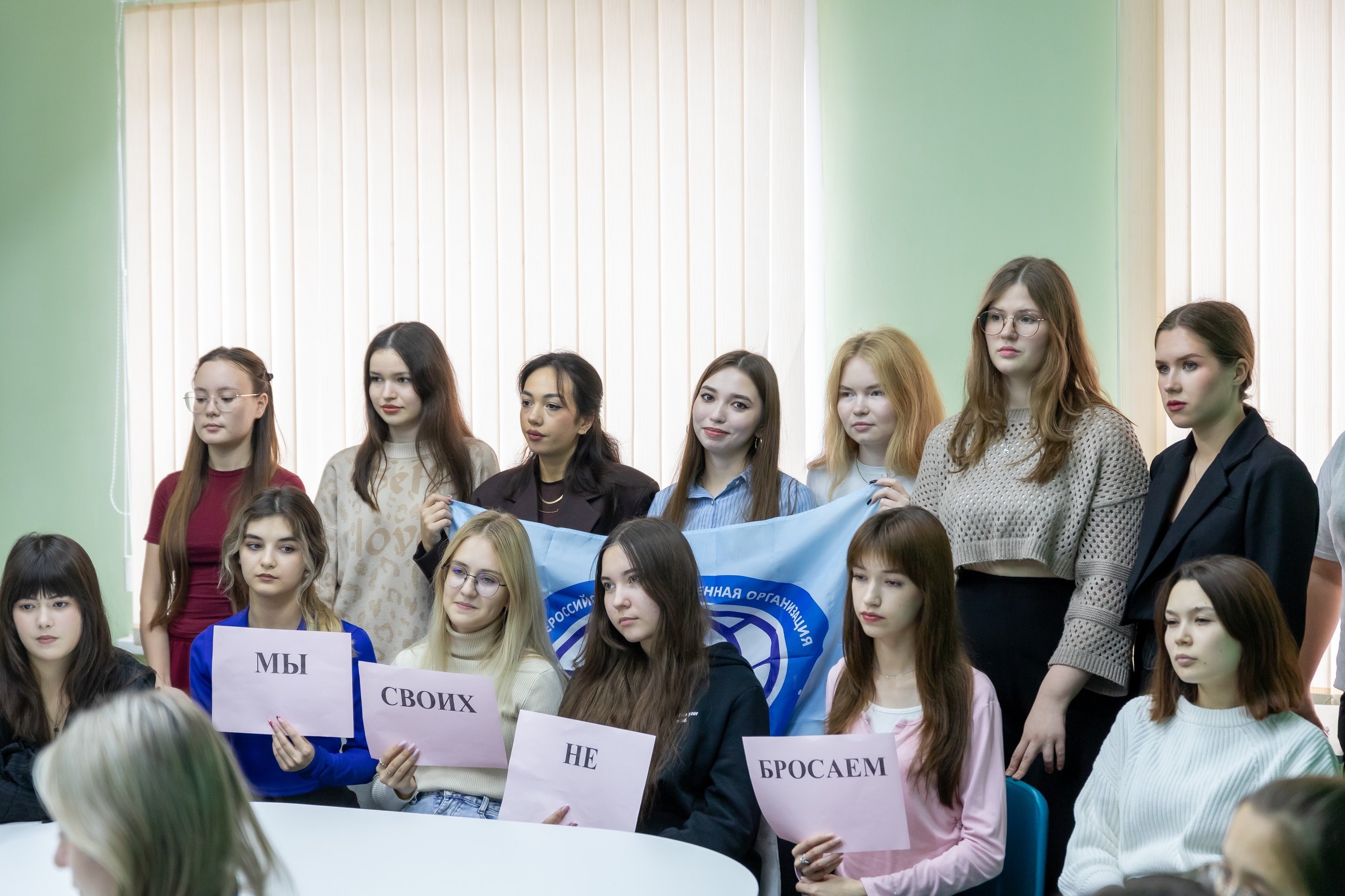 Искренне и трогательно звучали в этот день  стихотворения в прочтении студентов. Студентка 2 курса специальности «Педагогика и психология девиантного поведения» Камелия Жданова прочитала свое стихотворение  о бойцах СВО. Студент 4 курса профиля «Психология в управлении и экономике» Павел Рудявко, руководитель волонтерской группы,   прочитал знаменитое стихотворение времен Великой Отечественной войны «Жди меня».