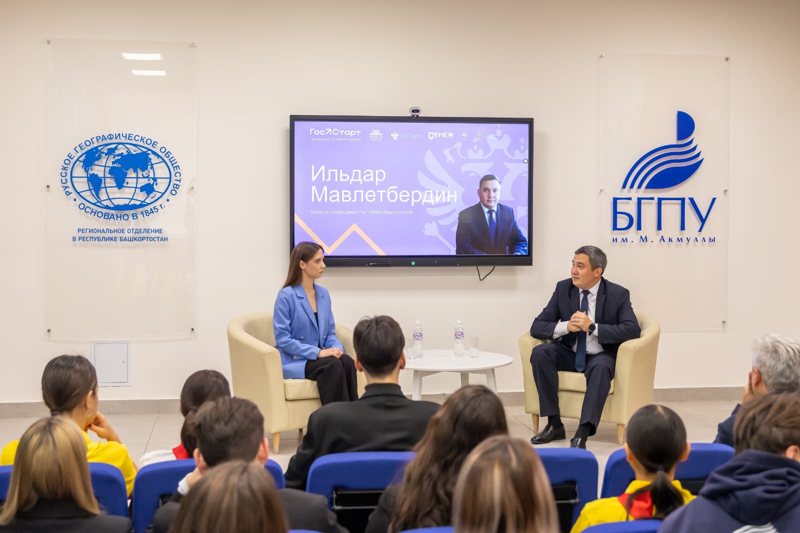 16 октября в Акмуллинском университете состоялось открытое общение студентов с министром просвещения Республики Башкортостан. В ходе встречи студенты с Ильдаром Мавлетбердиным активно обсудили вопросы о семейных ценностях, карьере на госслужбе, возможностях использования искусственного интеллекта в профессиональной деятельности педагога.
