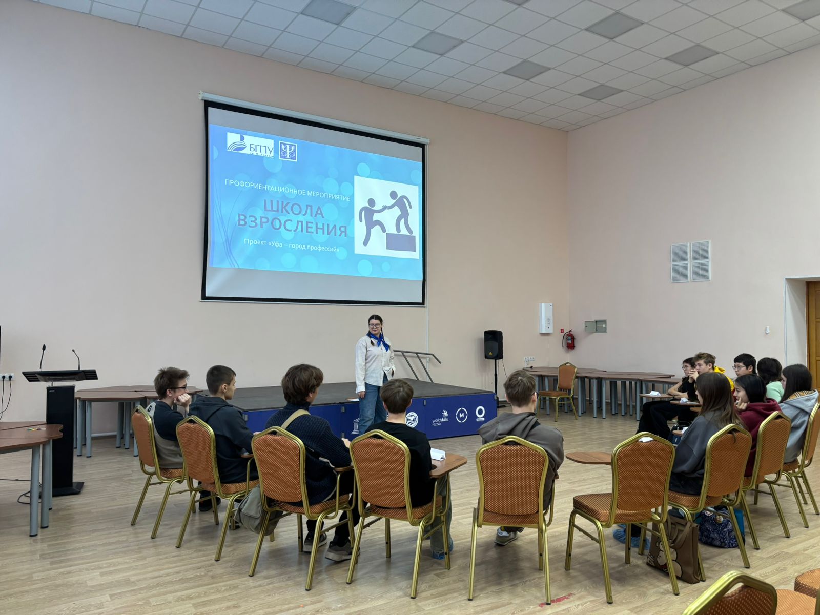 30 октября 2025 года студенты третьего курса направления «Психологическое консультирование и медиация в социальной сфере» Алсу Галлямова, Авелина Шабаева и Иван Савостьянов радушно встретили обучающихся 9-11 классов «Школа взросления», проект «Уфа – город профессий». Ученики посетили профориентационное мероприятие в рамках «Акмуллинской академии».