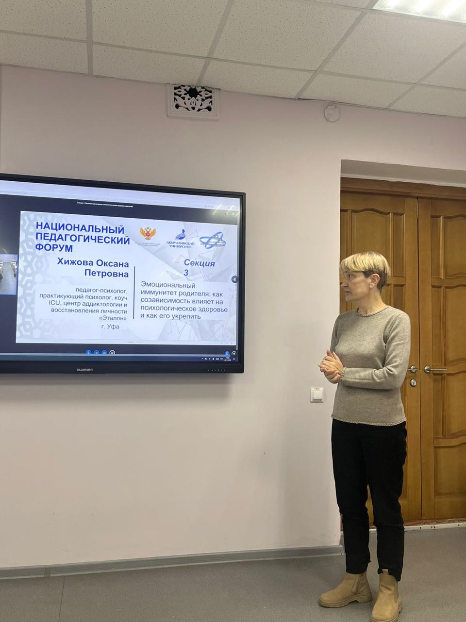• От теории к практике. Г. М. Сибаева (БГПУ им. М. Акмуллы) выделила ключевые личностно-развивающие ресурсы, а практикующий психолог Р. Ф. Нигматуллина рассказала, как стать «ресурсным родителем» – основой доверительных отношений с ребенком.