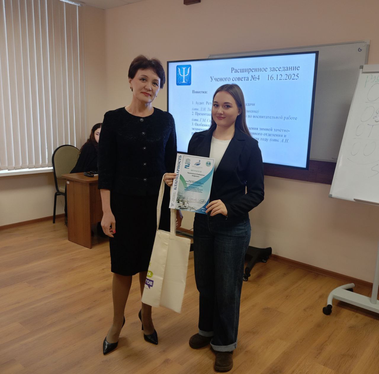 16 декабря в рамках расширенного Ученого совета факультета психологии прошла торжественная церемония награждения самых активных и инициативных студентов. Декан факультета Лилия Халикова лично вручила Благодарственные письма тем, кто не только успешно осваивает учебную программу, но и вносит неоценимый вклад в жизнь факультета, проявляя инициативу и энтузиазм.