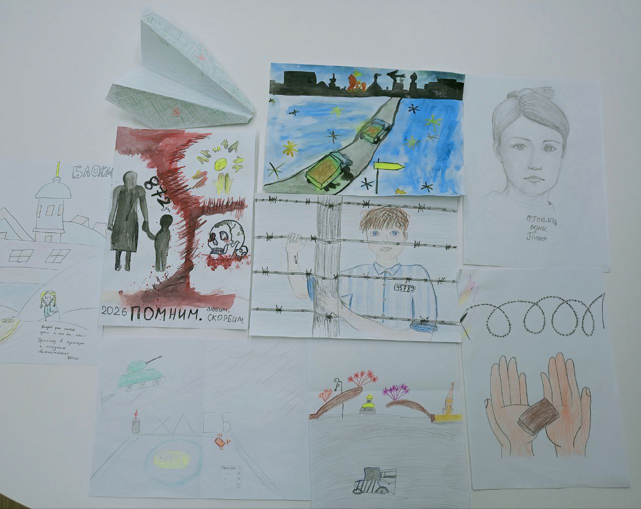 Первокурсники нарисовали рисунки в память о мужестве и подвиге нашего народа.  Во время импровизированной выставки рисунков студенты делились эмоциями, мыслями и переживаниями о трагических событиях.