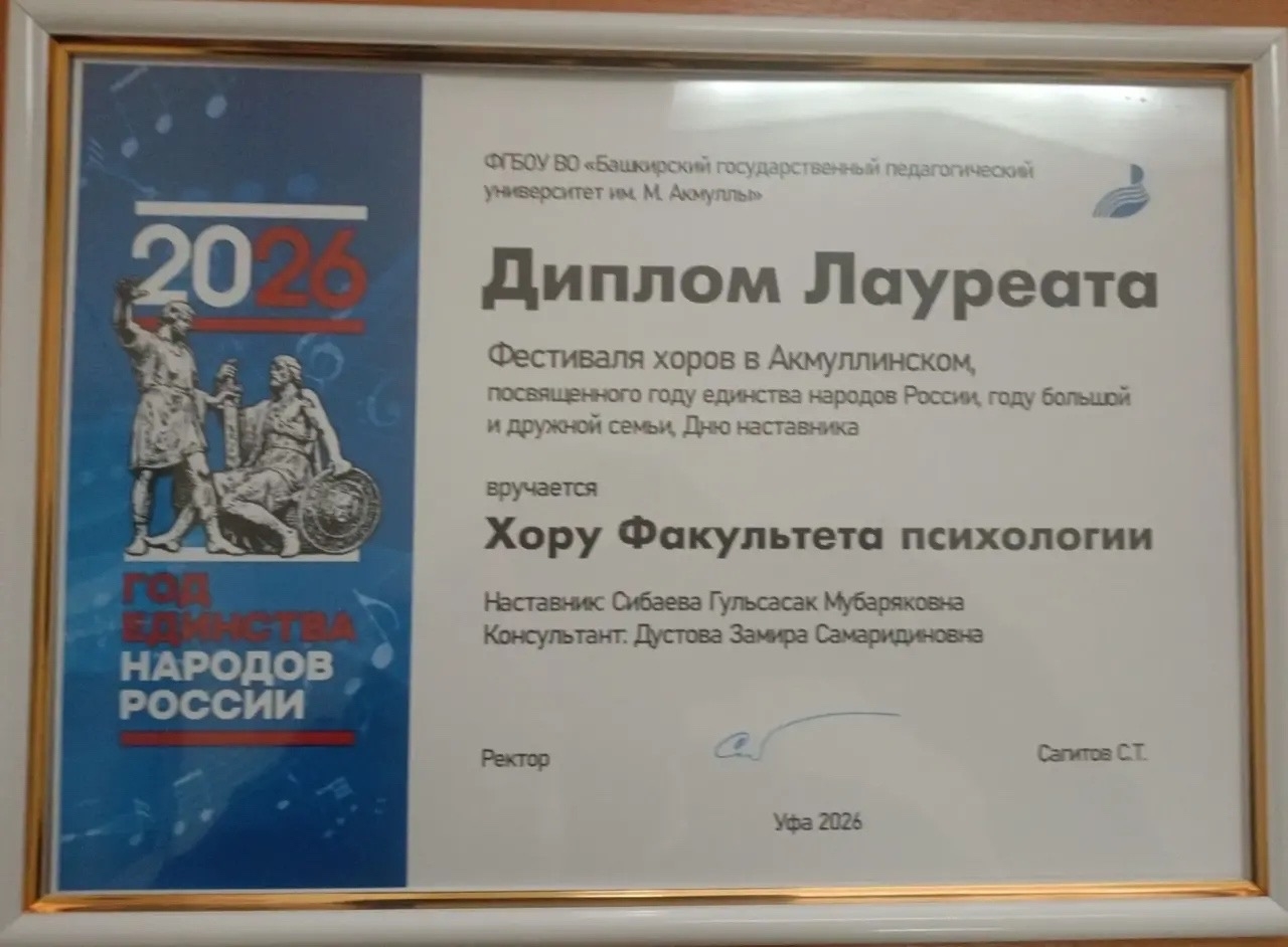 Особую роль в подготовке и успешном выступлении хора сыграла студентка второго курса Камалетдинова Эльвина. Ее активное участие в репетициях и организации стало важным фактором, способствовавшим яркому и запоминающемуся концерту.