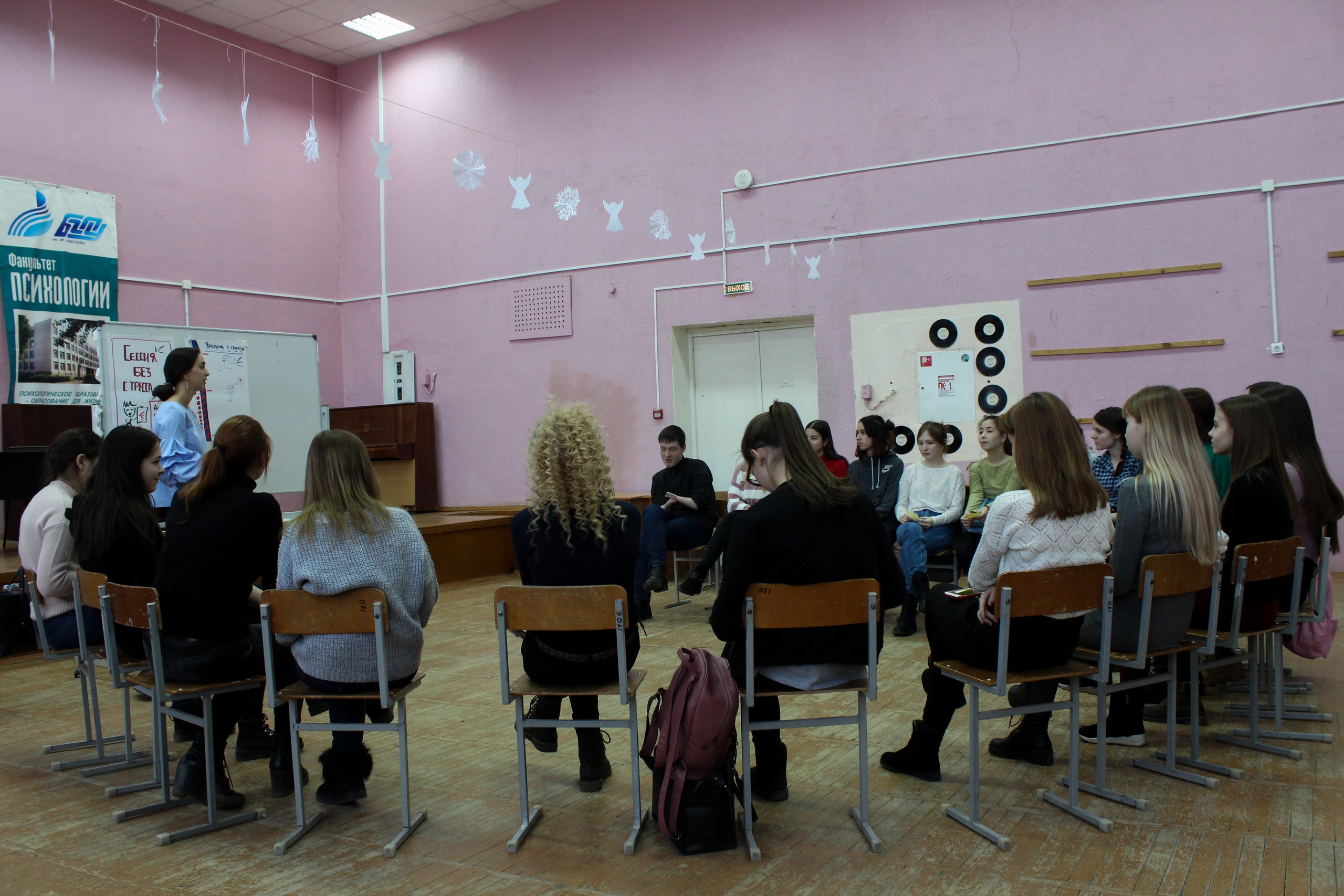 Анна поделилась различными лайфхаками и практическими рекомендациями по методам борьбы со стрессом, совместно со студентами разобрала, как лучше всего готовиться к экзаменам, ответила на все интересующие вопросы, и, в целом, обсудила с ними, как поменять свою жизнь в лучшую сторону. Тренинг был весьма насыщенный, ребята активно включались в дискуссии, делились мнениями и опытом с ведущей и сокурсниками.