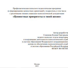 Об апробации программы «Ценностные приоритеты в твоей жизни»