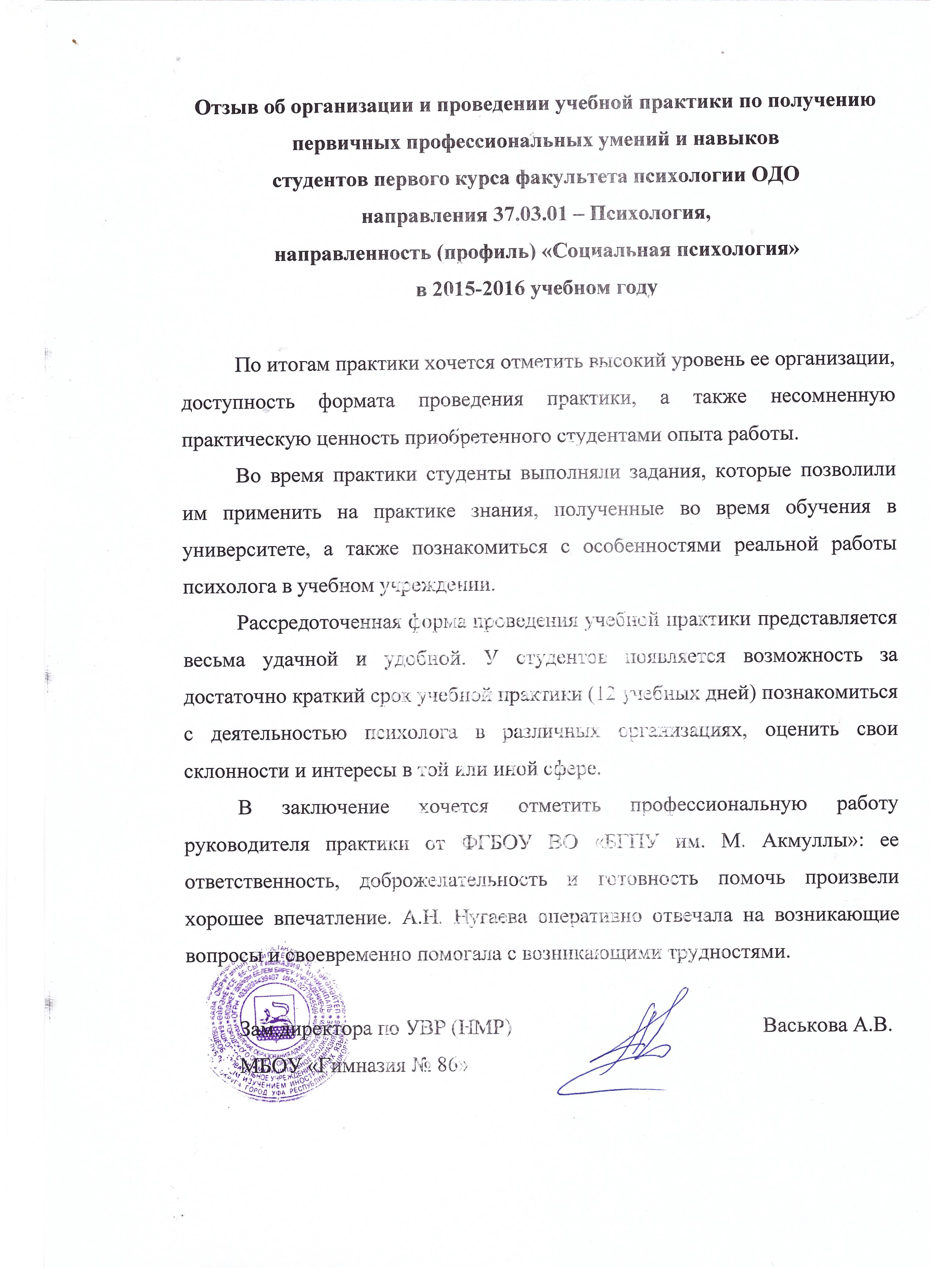 На факультете психологии уже несколько лет используется новая форма проведения рассредоточенной учебной практики студентов направления "Психология", профиль "Социальная психология". В течение учебного семестра студенты имеют возможность познакомиться с особенностями деятельности психолога в организациях и учреждениях различного профиля - колледжа, гимназии, Всероссийского Центра глазной и пластической хирургии "Аллоплант", Центра психолого-педагогической, медицинской и социальной помощи «Семья». Под руководством зам.декана по учебной работе А.Н. Нугаевой студенты не только наблюдают за работой опытных специалистов, но и получают бесценный опыт первых шагов в профессии - проводят диагностику, первичные интервью, тренинги, занятия по саморегуляции и др.